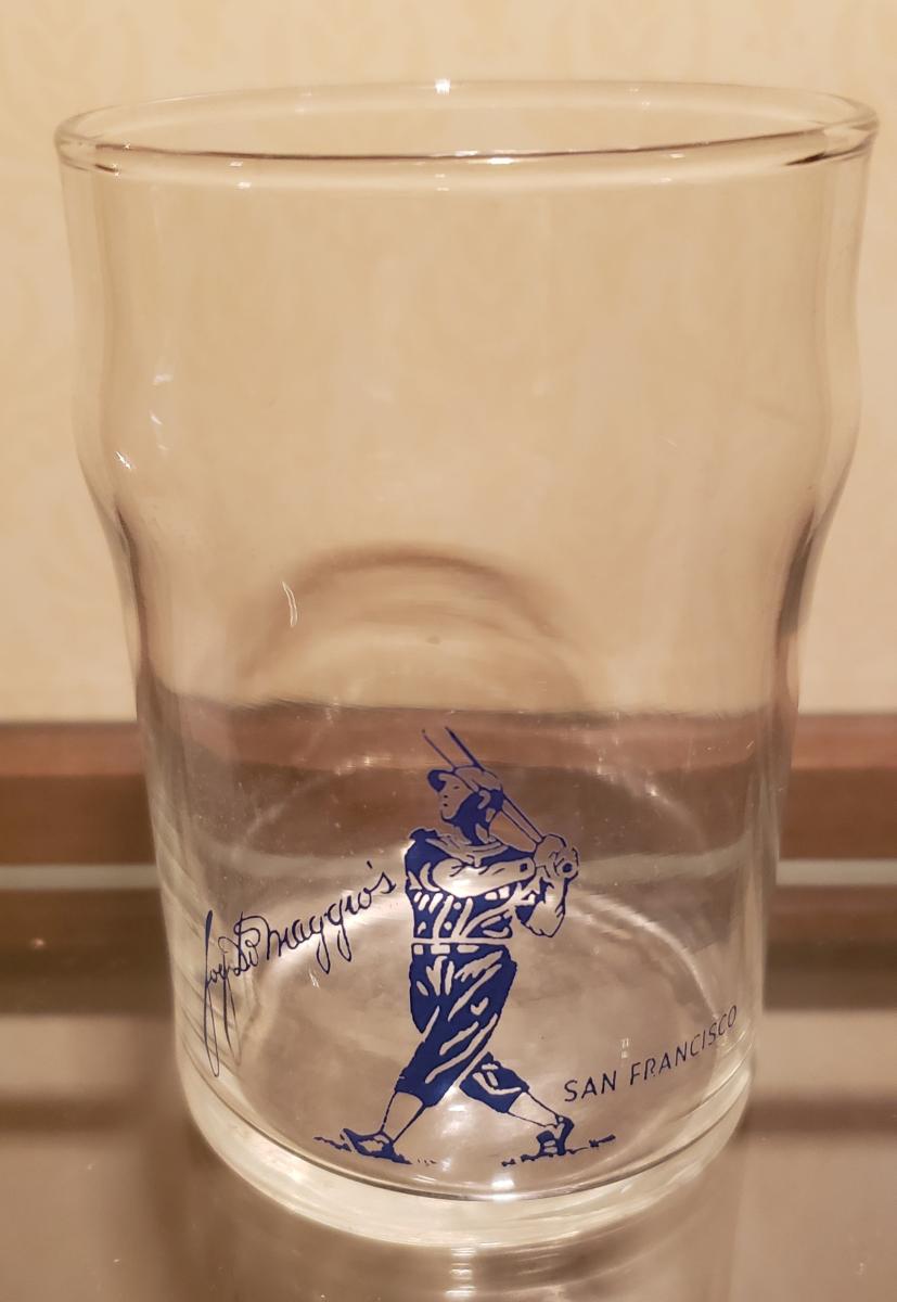 This small glass tumbler was from baseball legend Joe DiMaggio's famous restaurant in San Francisco, California, which was also his hometown.