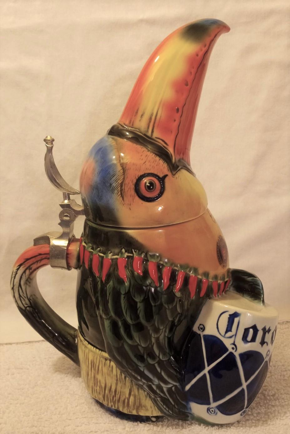 Limited edition Corona Toucan Character stein #65 of 5,000. Distributed by Tradex and designed by Albert Stahl.