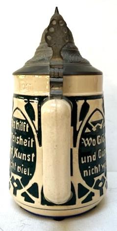 Marzi & Remy made steins 1879-1994. This "Student Prank" is about 7-1/2 tall. It has a 0.5L capacity mark, mold #1829, M&R logo and a small "Made in Germany" ink stamp on the base. In 1887 it was required to have Germany or Made in Germany on all exports. This stein may have been made 1887-1939 when WW2 started.