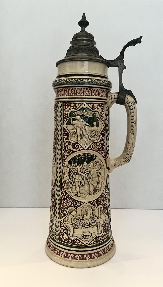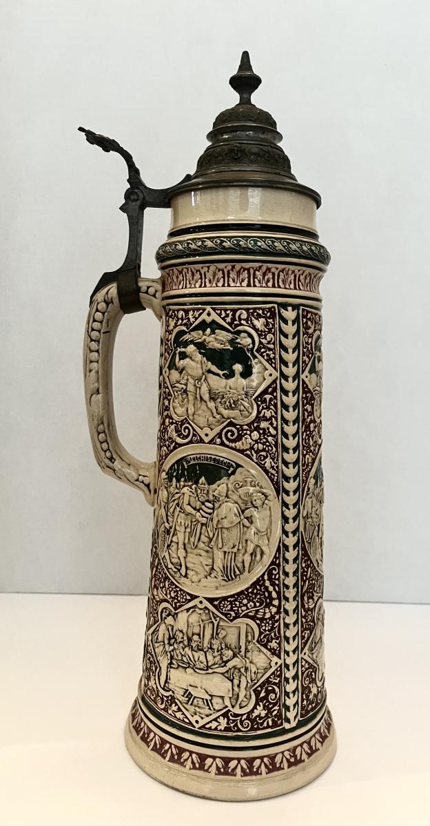 2 liter Siegburg Schnelle style with a renaissance theme, made by Dumler and Breiden about 1895