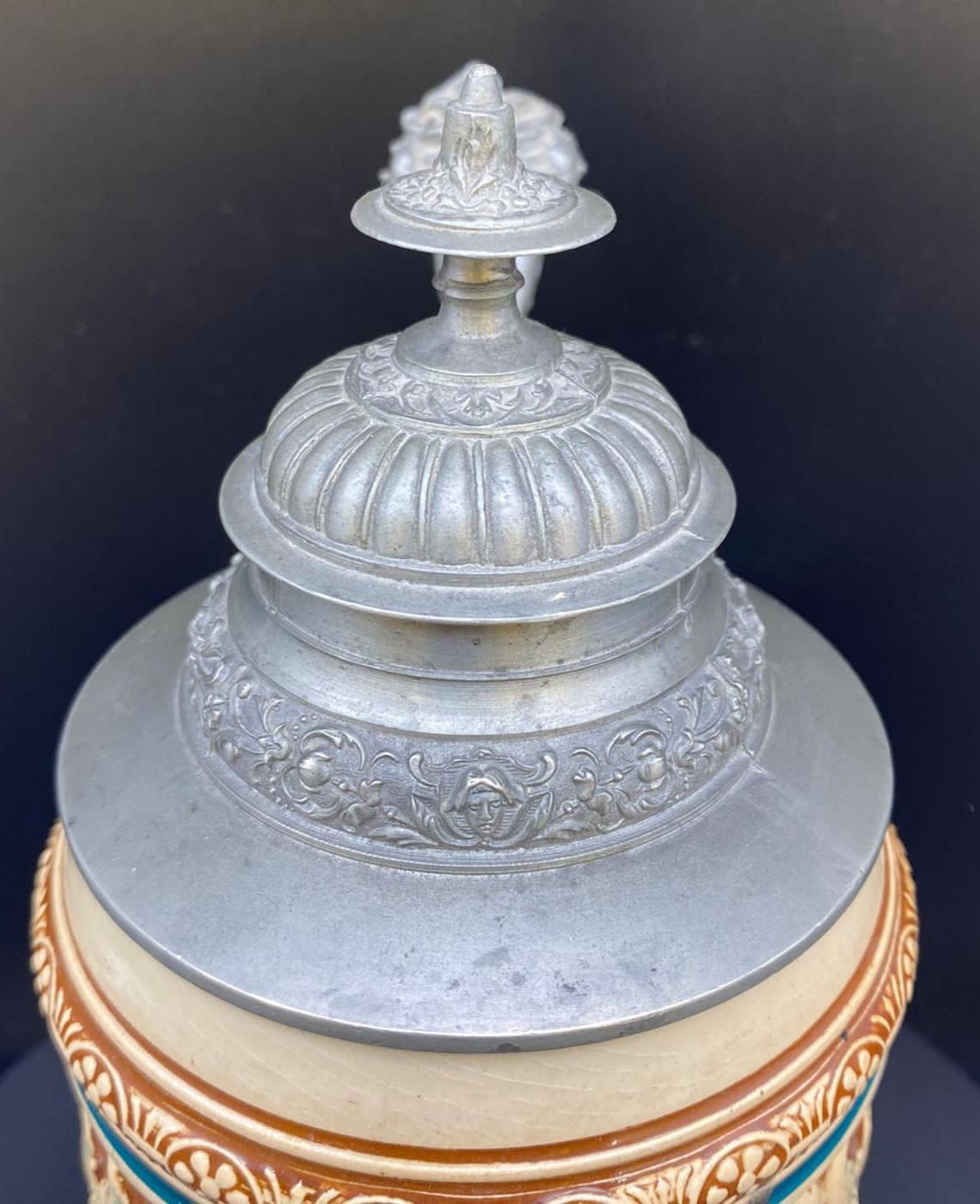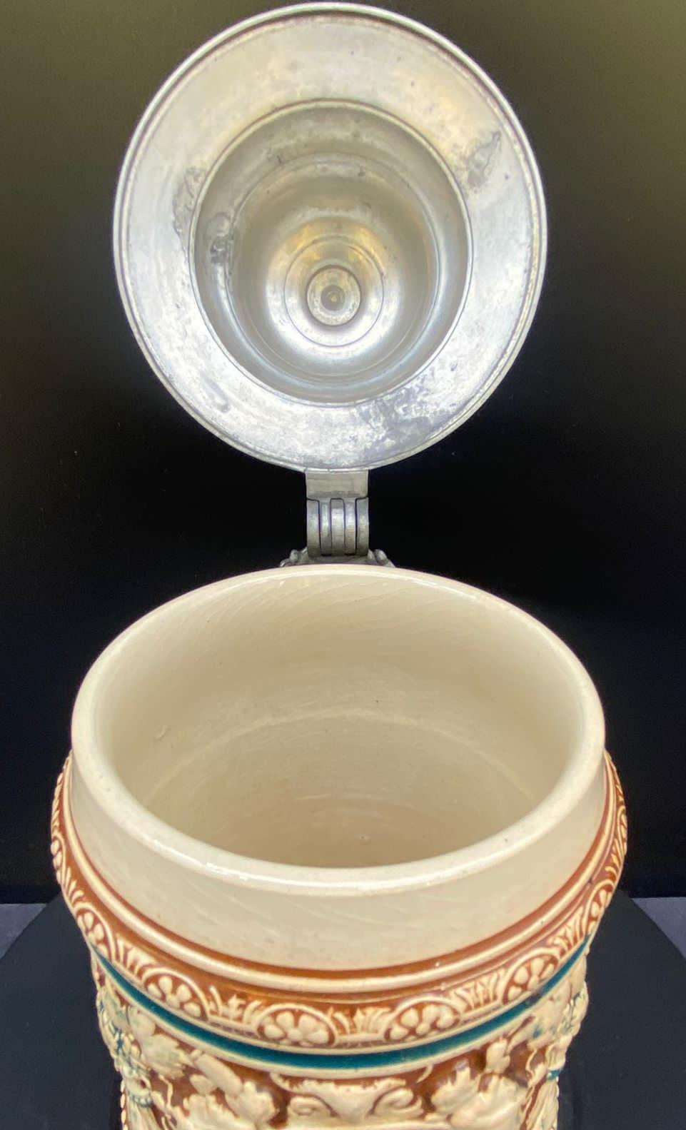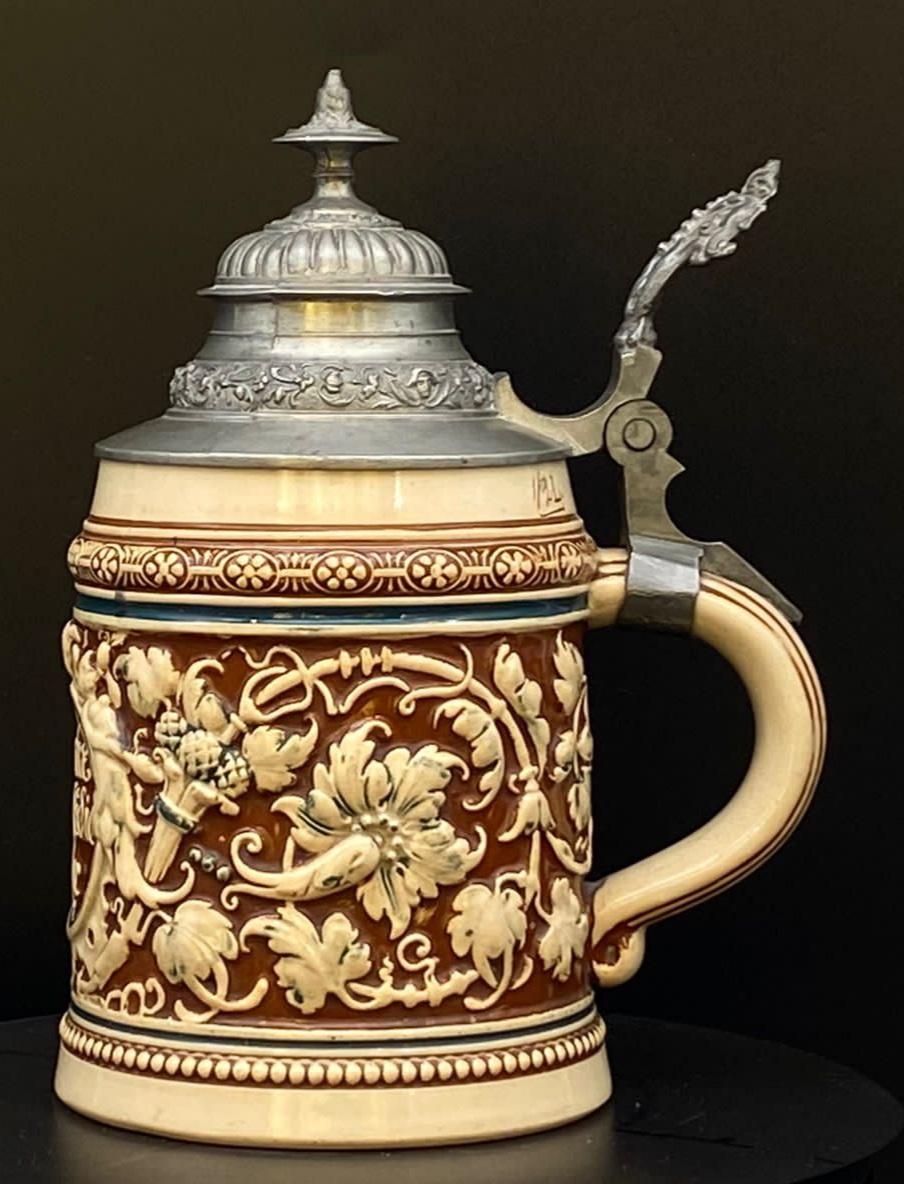 The front of this beer mug has the inscription "Dem Durst die Ehr," which can be translated as "Honor to Thirst" or "In Honor of Thirst."