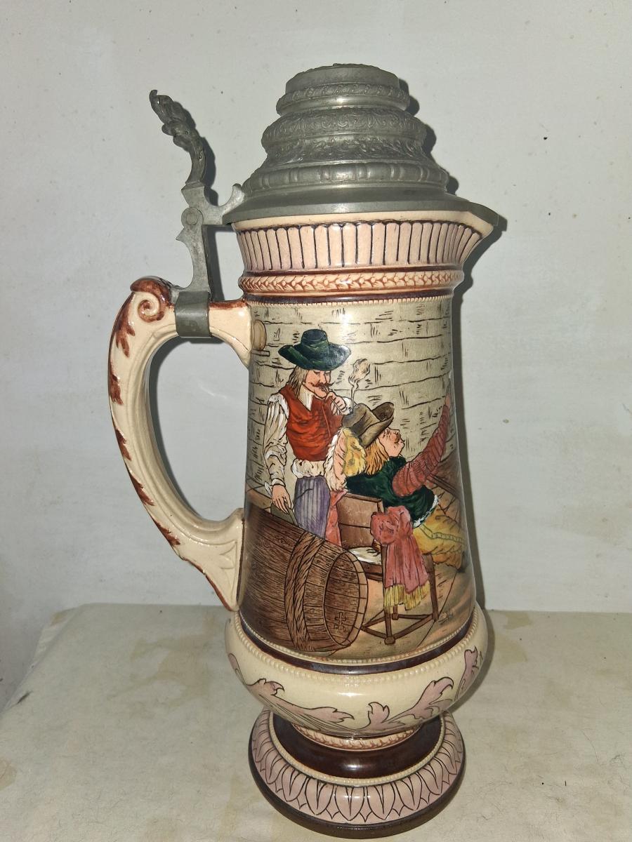 This is the master stein to .4L drinking steins (the drinking steins are etched, the master stein is transfer) with the same mold number. See [Link]