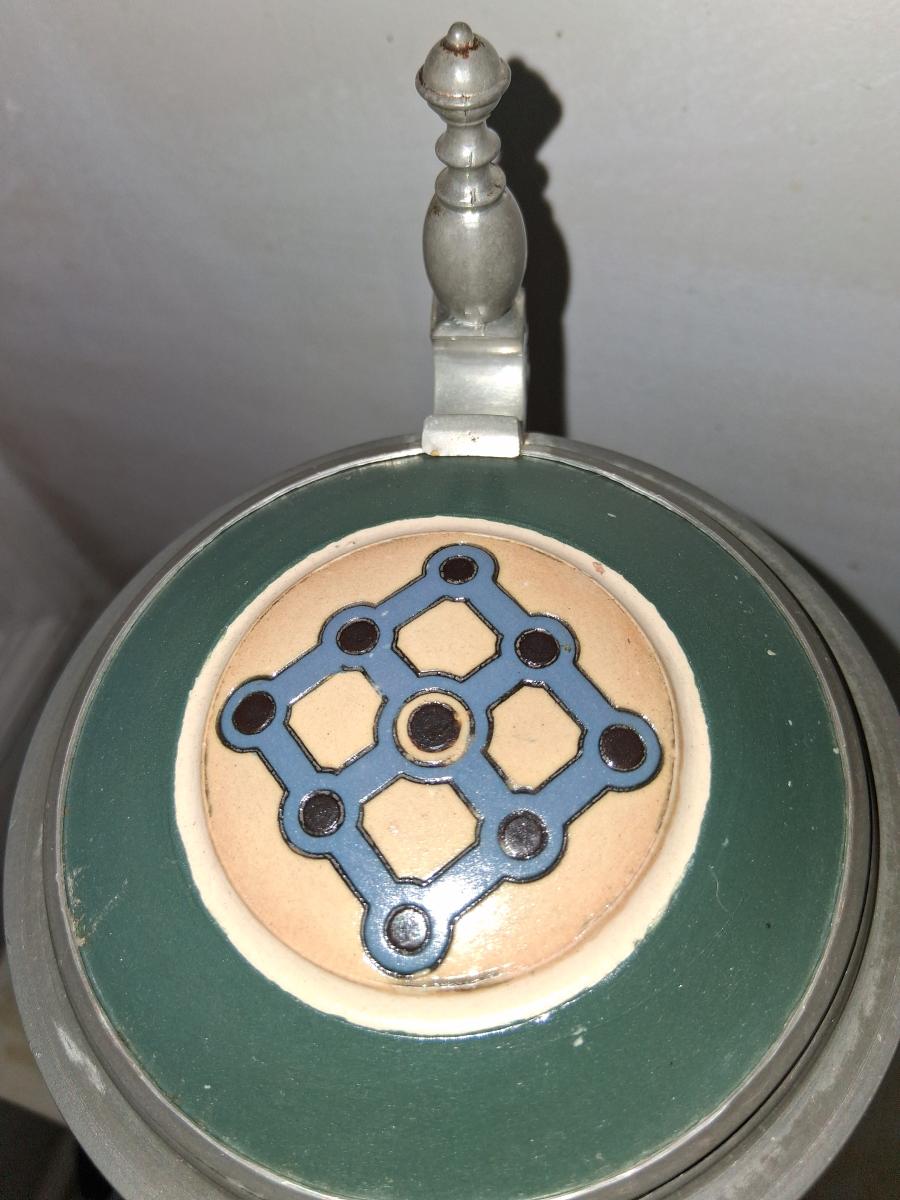 Bowling evolved from kegeling in the United States eventually. The lid insert (the arrangement of kegels) and thumblift (a kegel) are the standard ones used on all of V&B's etched kegelspeil steins.