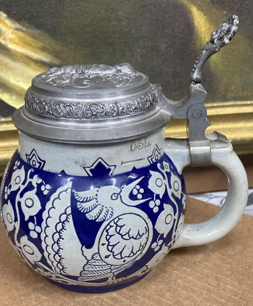 Stoneware, incised, 0.5L, pewter lid. Design attributed to Bruno Mauder. See the link: [Link]