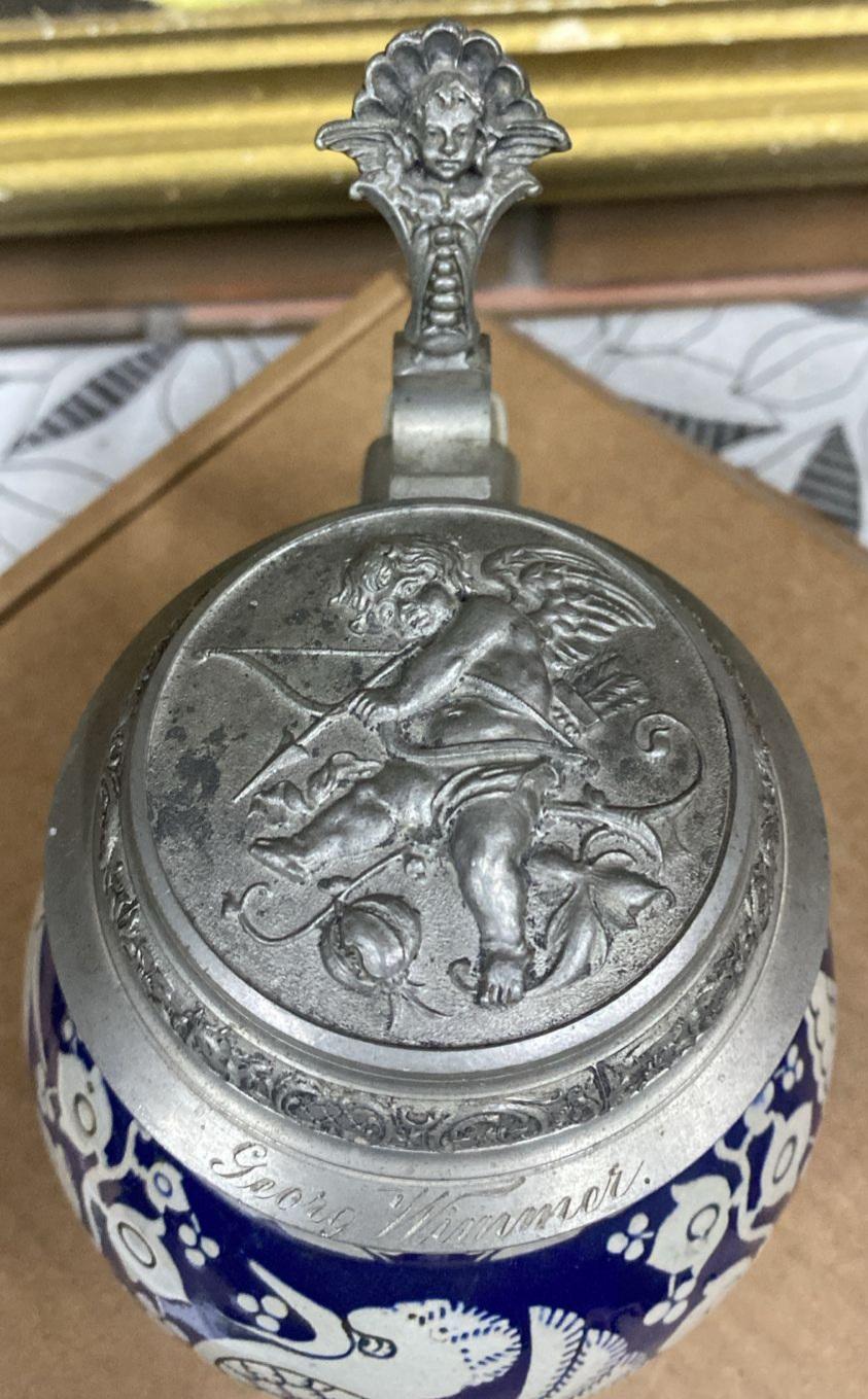 The mug is personalized. The tin lid has an engraving of its owner's name, Georg Wimoner.