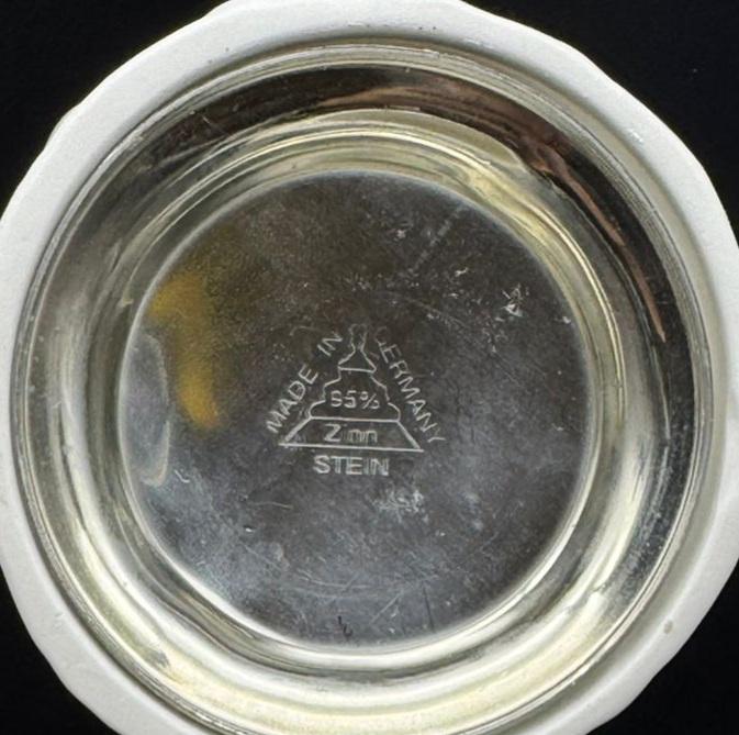 In 1937, the porcelain manufacturing firm of Ernst Bohne Söhne was sold to Albert Stahl and incorporated as “Albert Stahl & Co. vormals (formerly) Ernst Bohne Söhne.” Unfortunately for Stahl, the factory was located in the town of Rudolstadt, in the formerly East German state of Thüringen (Thuringia), and following World War II the production facilities were nationalized and eventually converted to the production of technical porcelain. While the company managed to retain many of the original molds and, after reunification, was able to reclaim others that had been confiscated, stein production both during the war years and thereafter under the socialist regime was virtually non-existent. See the link for the source of information: [Link]