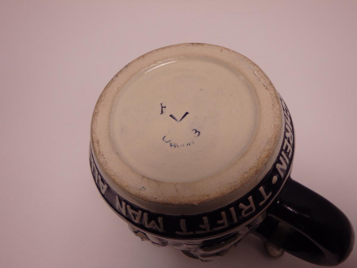 The mold number is located on the back side under the handle, but it appears lightly applied and is unreadable under the thick glaze.