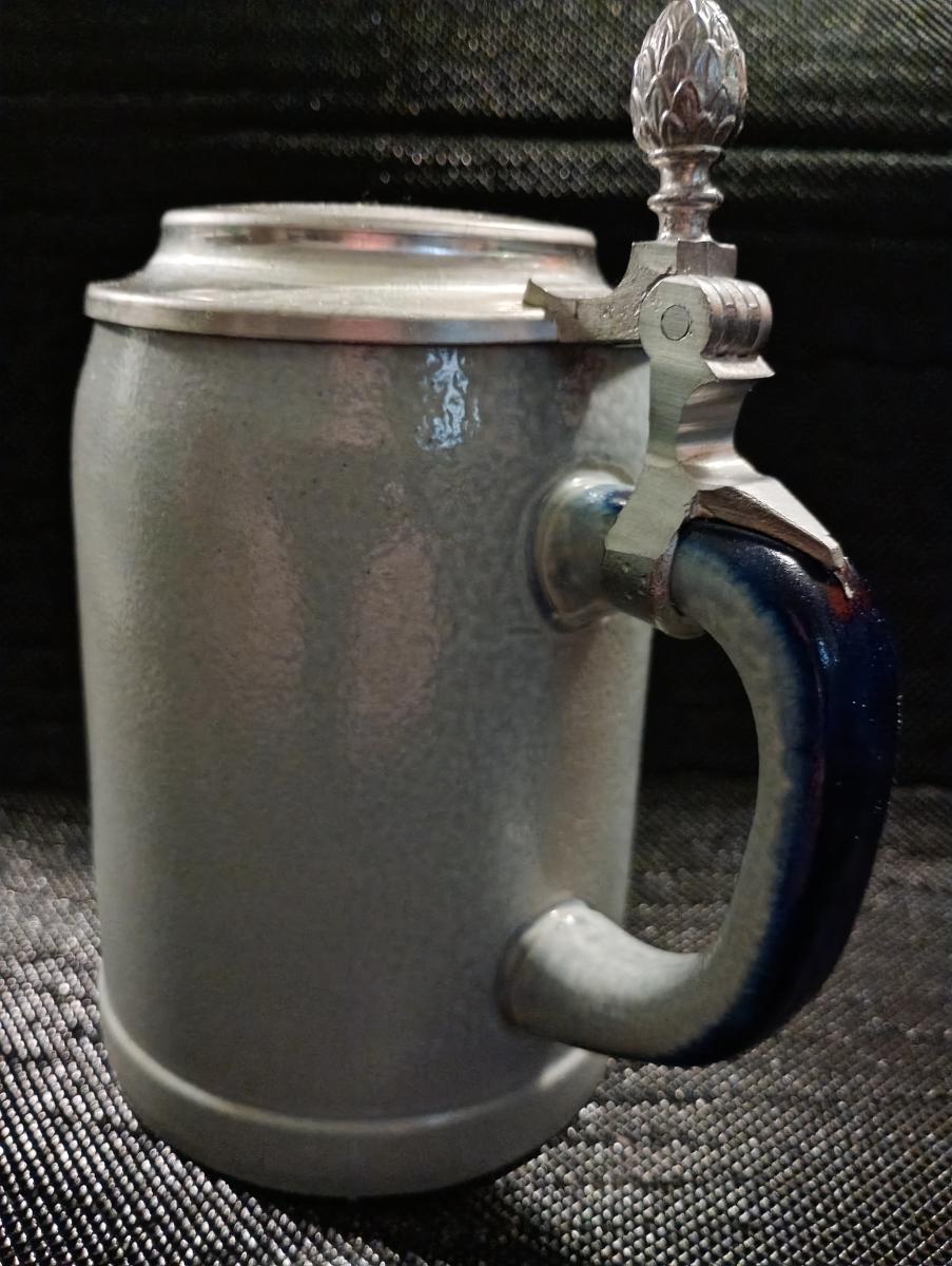 Delicate pewter Lid made of pressed Tin Sheet, inside touch-marked "SGH ZINN" in circle, Hops Thumb-lift, five-ring open hinge.
