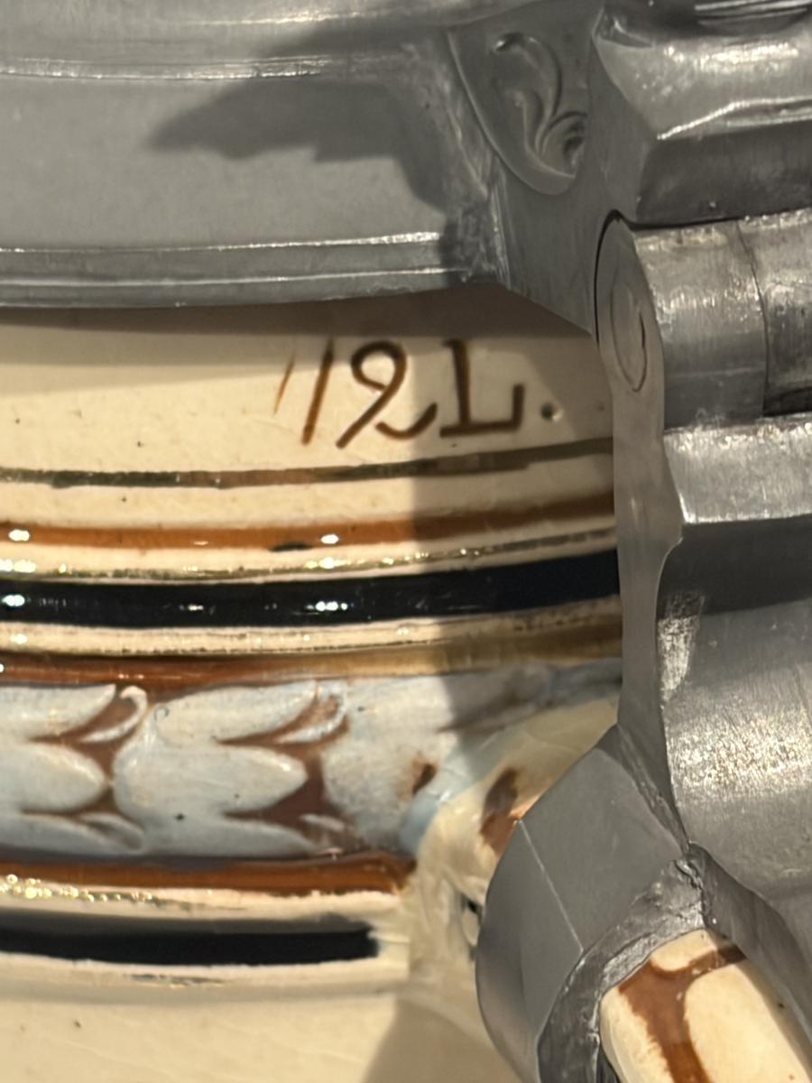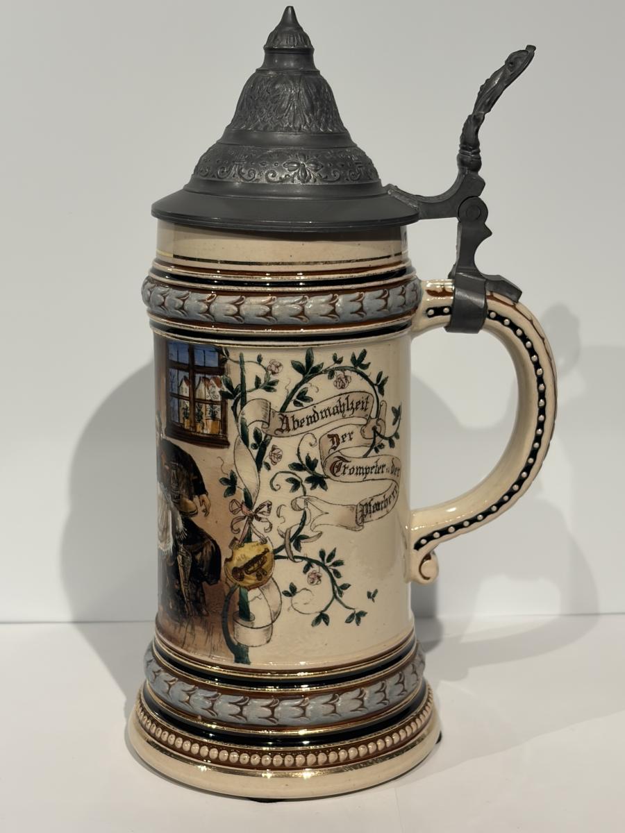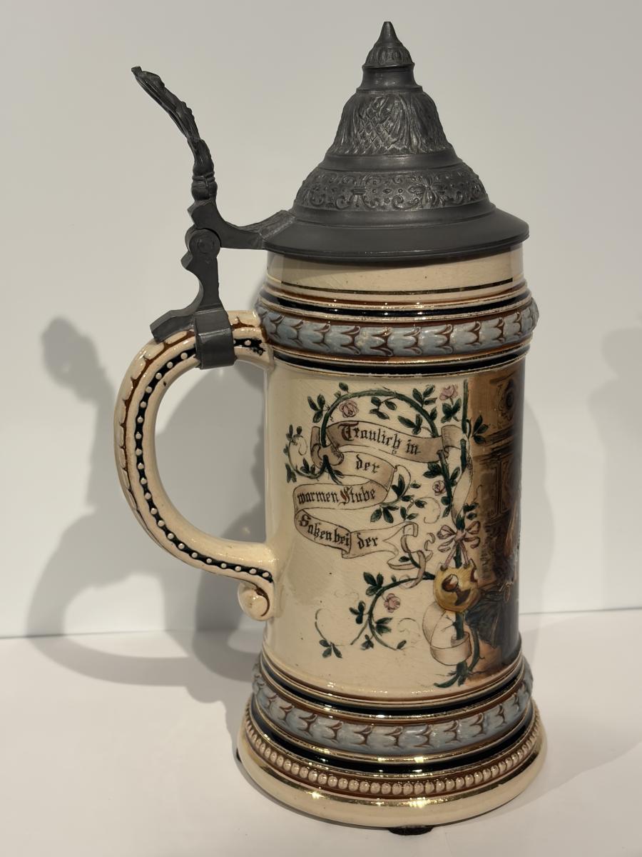Merkelbach & Wick PUG stein Catalog # 1794 “Tavern Scene” 0.5 Liter with pewter lid 19 cm at the top of the tankard 25 cm at the top of the lid