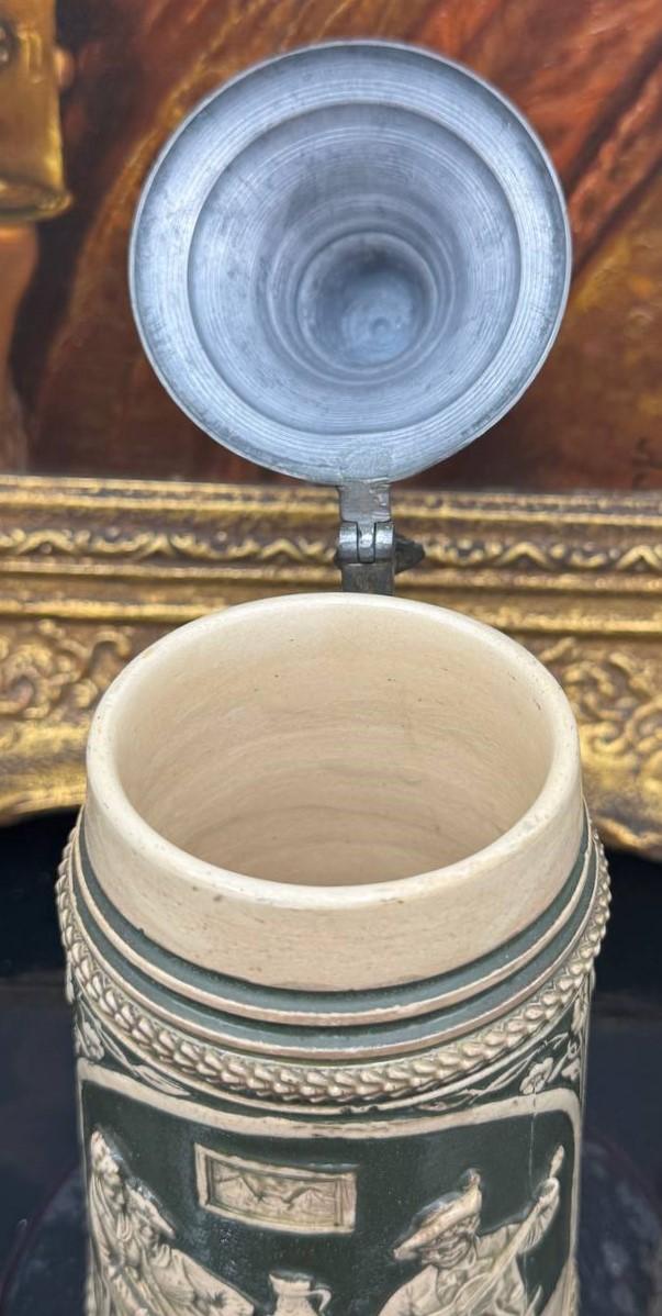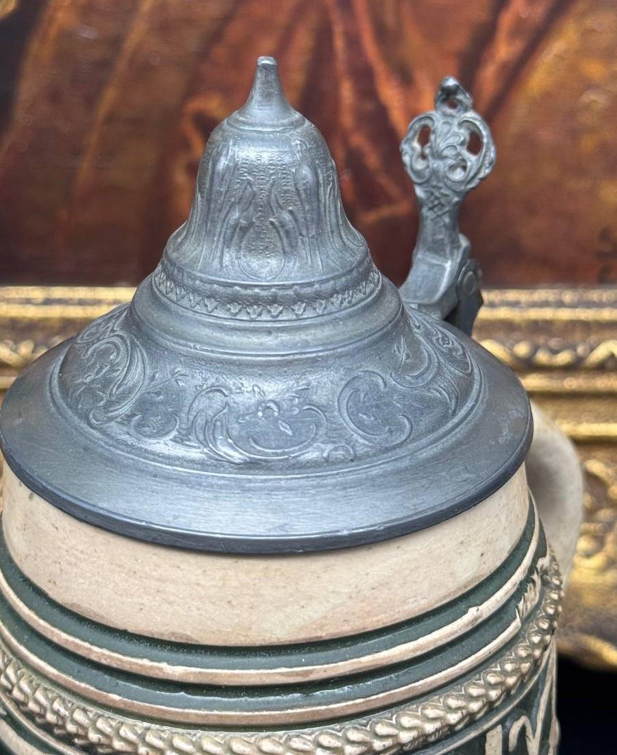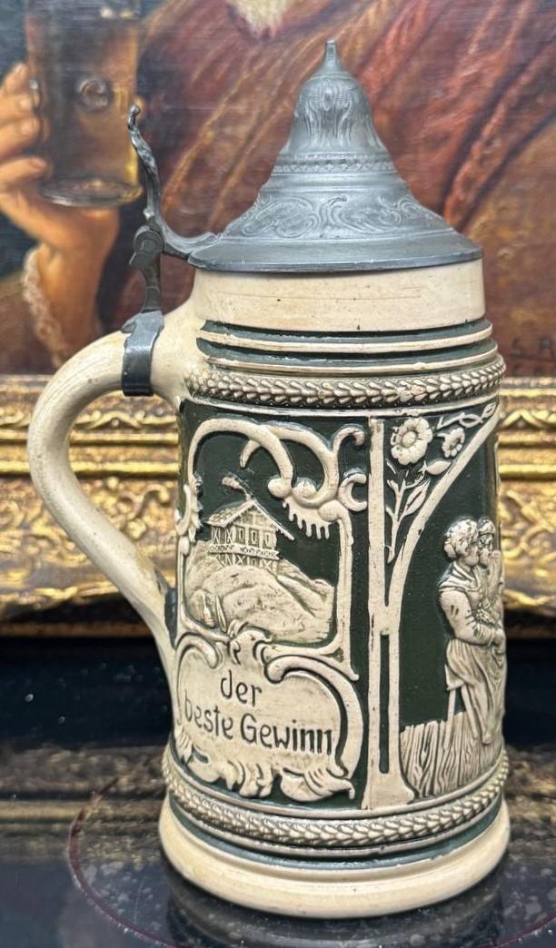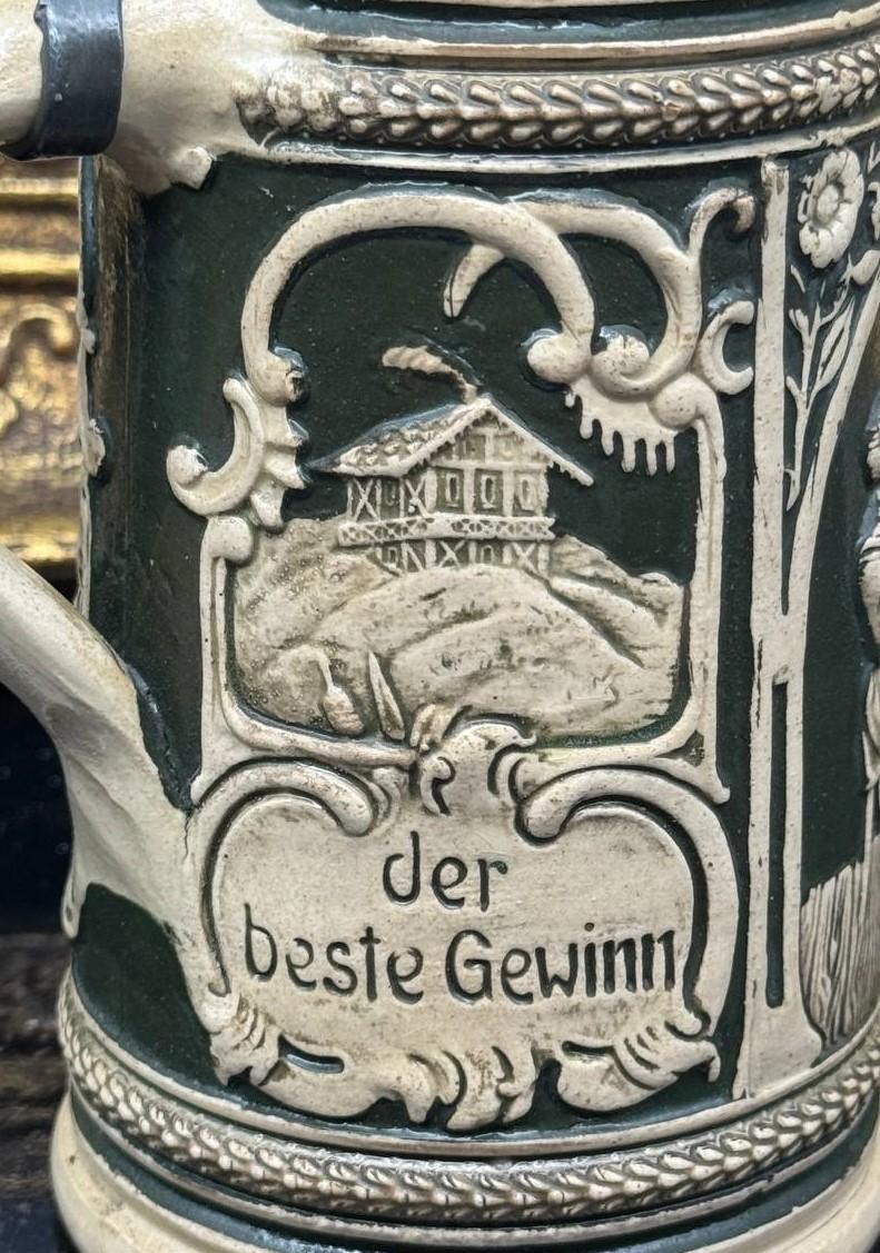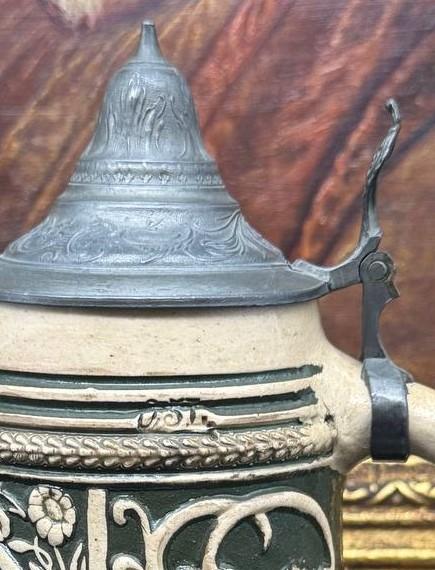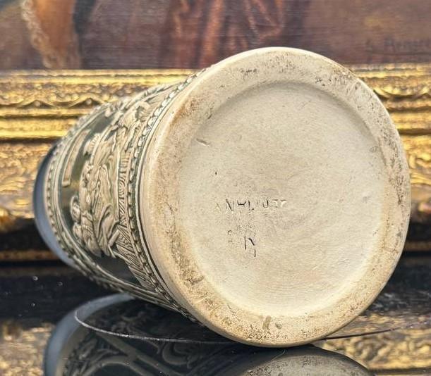 Form: Krug Material: Steinzeug Hersteller: Reinhold Hanke Hersteller info Designer/Dekorateur: unbekannt Modell: - Kapazität: 0,5 Entwurfdatum: 1876-1886 Höhe des Objektes (Excl. Deckel): 17.0 cm (appx. 6.6 inches.) In der Datenbank seit:: 01.04.2026