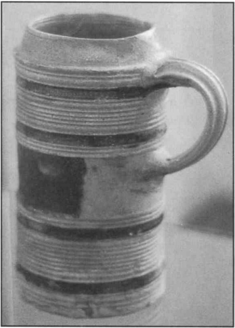 Afb. 16 Gres maat zonder schenktuit met (boven) beige en (onder) bruine glazuur bedekt.