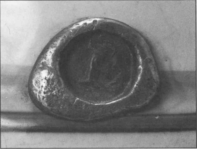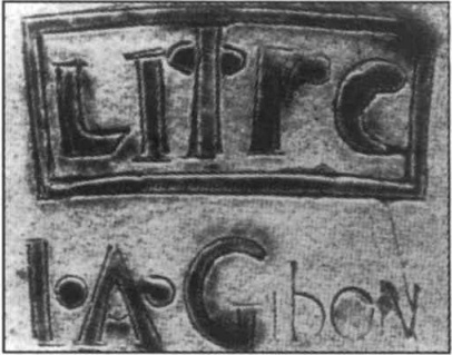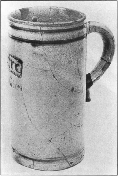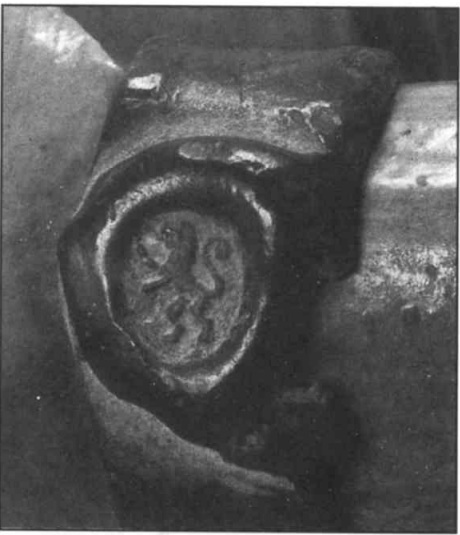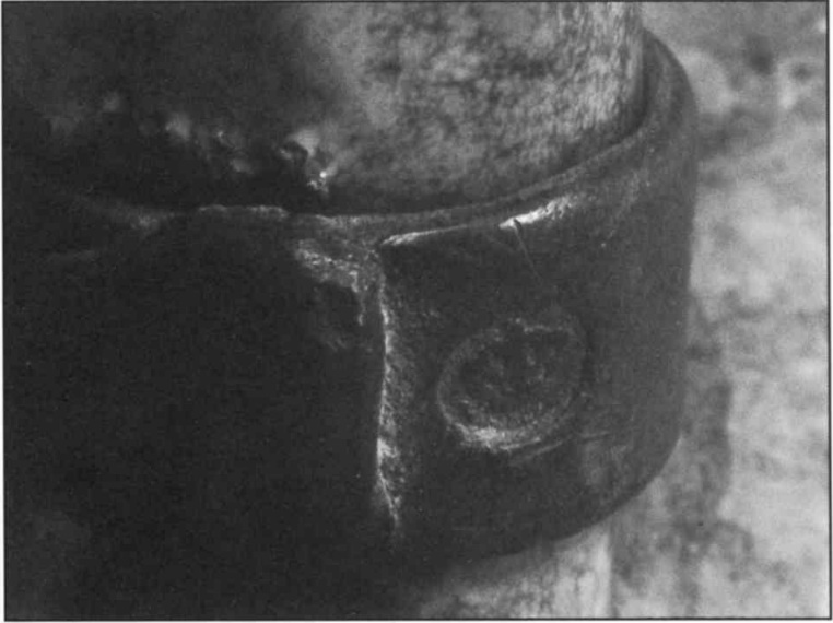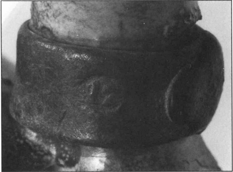 Afb· 4c Loden bandje om de hals van een gres maat, met het ijkmerk YYY