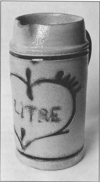 Afb.8a/b Gres maat zonder schenktuit van Litre, pottenbakkersmerk I.A. Gibon.