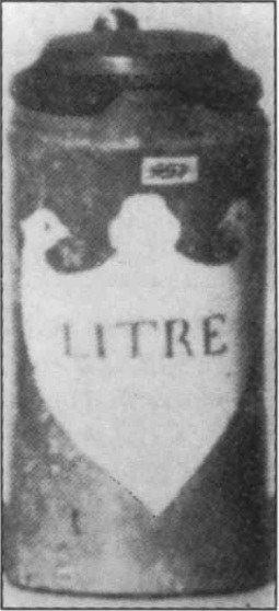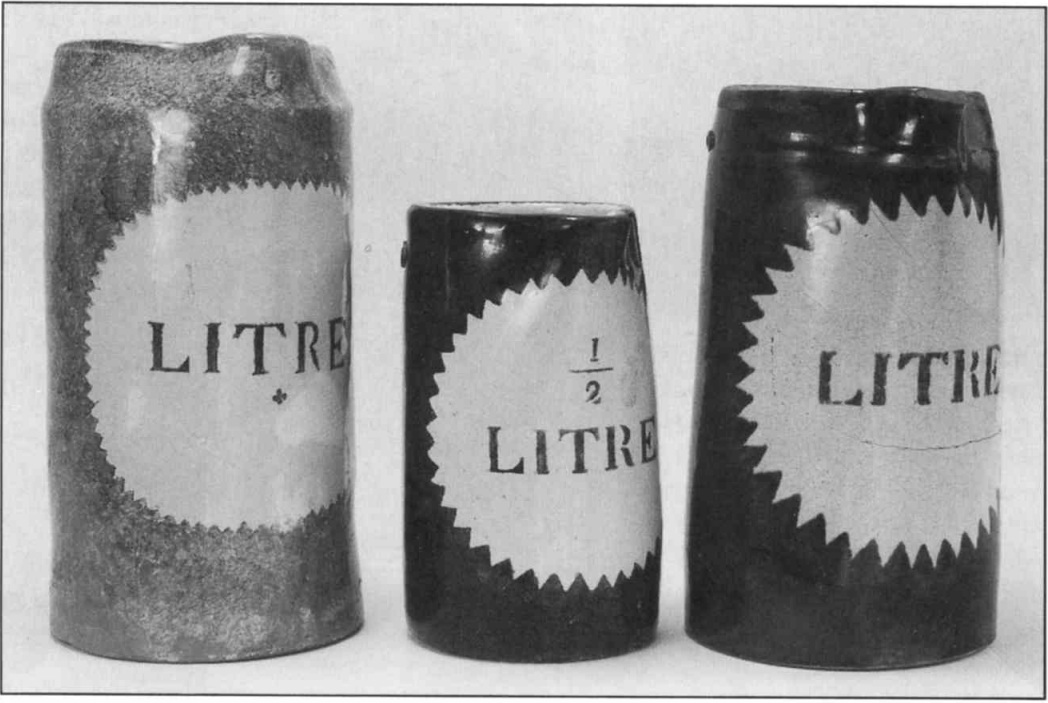 In Frankrijk en de bezette gebieden, onder andere België sinds 1792, werd het metrieke stelsel in 1801 ingevoerd. Daarbij werd de Litre ingevoerd als inhoudsmaat. In Nederland werden, na de invoering van het metrieke stelsel, verschillende benamingen gebruikt om de liter voor droge waren (kop) en natte waren (kan) aan te duiden. In Frankrijk maakte men minder onderscheid. Hoewel de Litre in de regel voor natte waren werd gebezigd, komt ook het opschrift Litron voor (afb. l3a rechts). Dit was oorspronkelijk een Franse inhoudsmaat voor droge waren van 813 ml. In Nederland werd gewoonlijk het opschrift (Ned.) Kan gebruikt.