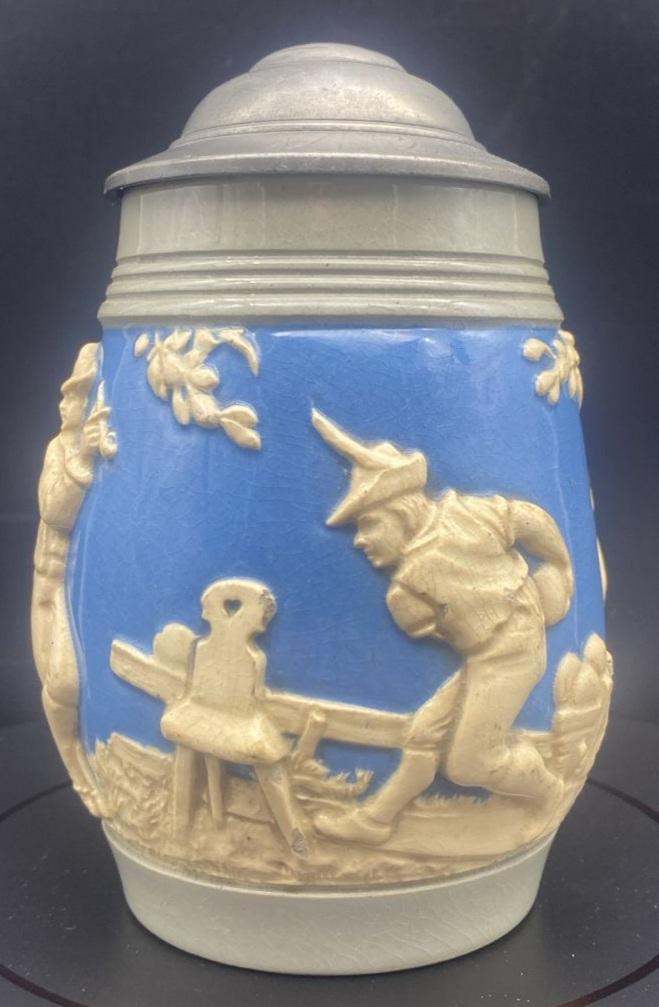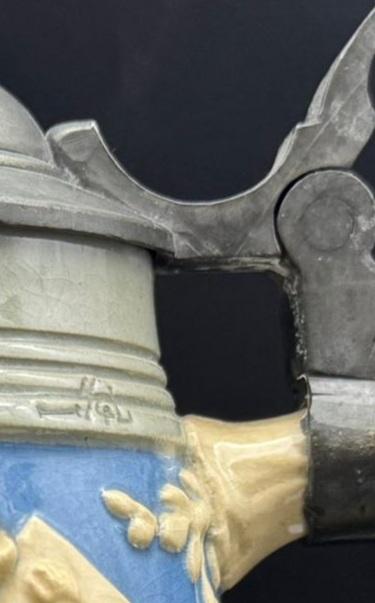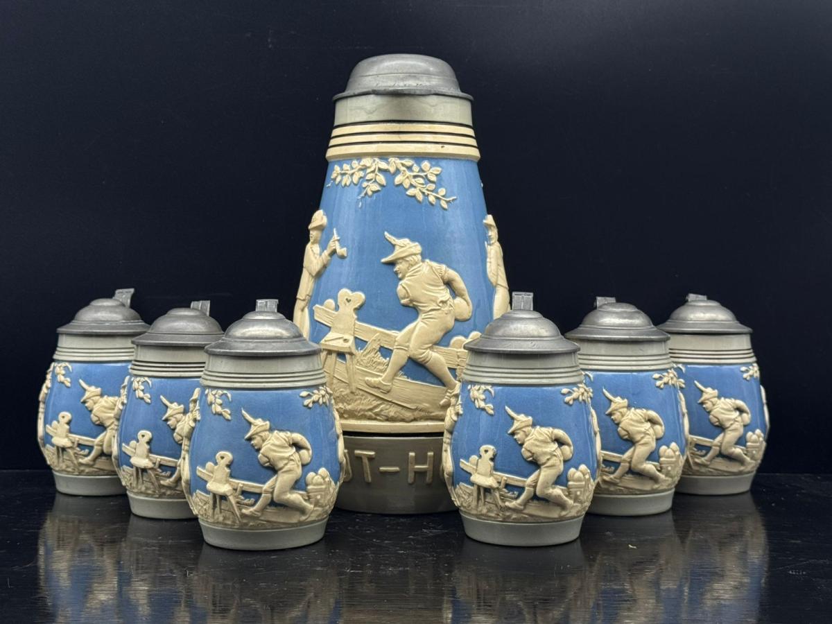 This miniature beer mug was dedicated by the Reinhold Hanke (RH) manufactory to the fans of the gambling German game of skittles, which is known today all over the world as bowling.