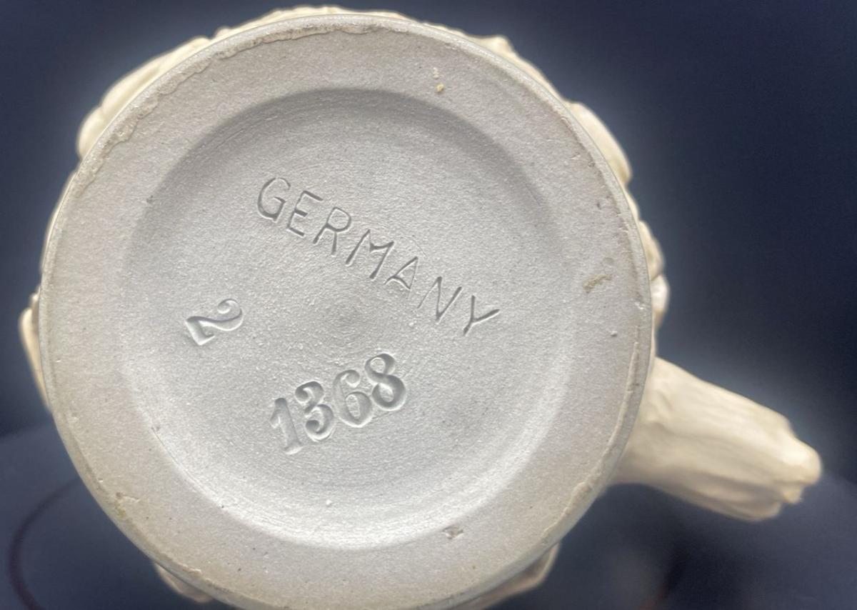 This mug has a volume of 1/4 l. It has the number 1368 in the RH factory catalog. This mug was made as a companion to a larger one - a 2-liter beer jug "GUT-HOLZ". It is marked in the RH catalog under the number 1952.