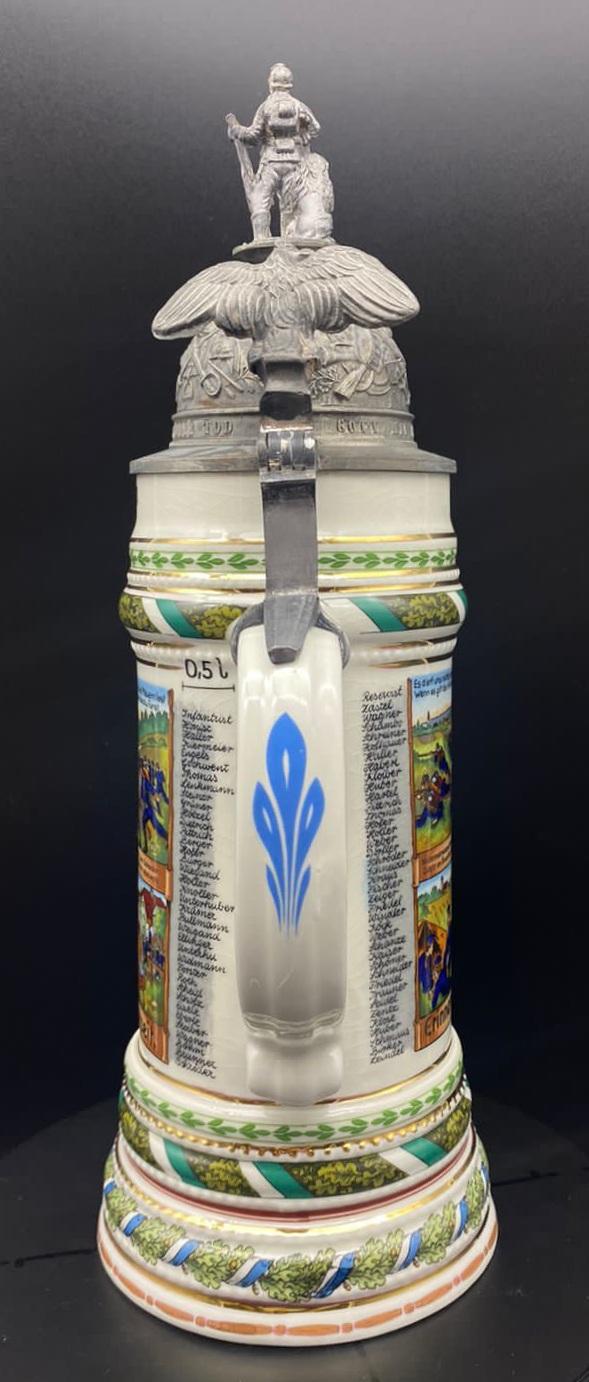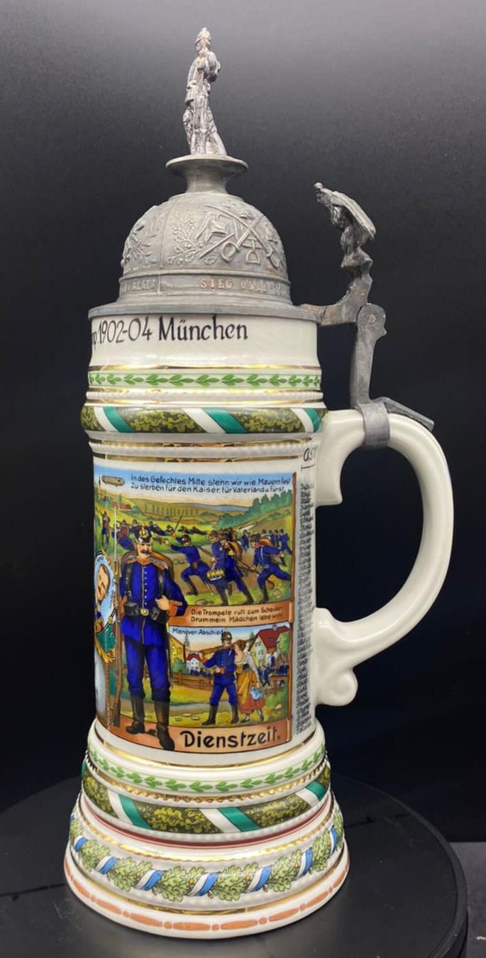 Soldiers often ordered such mugs at the end of their service to keep a memory of their time in the army. The soldier became a reservist of the German Imperial Army. These mugs were called "Reservist Mugs."