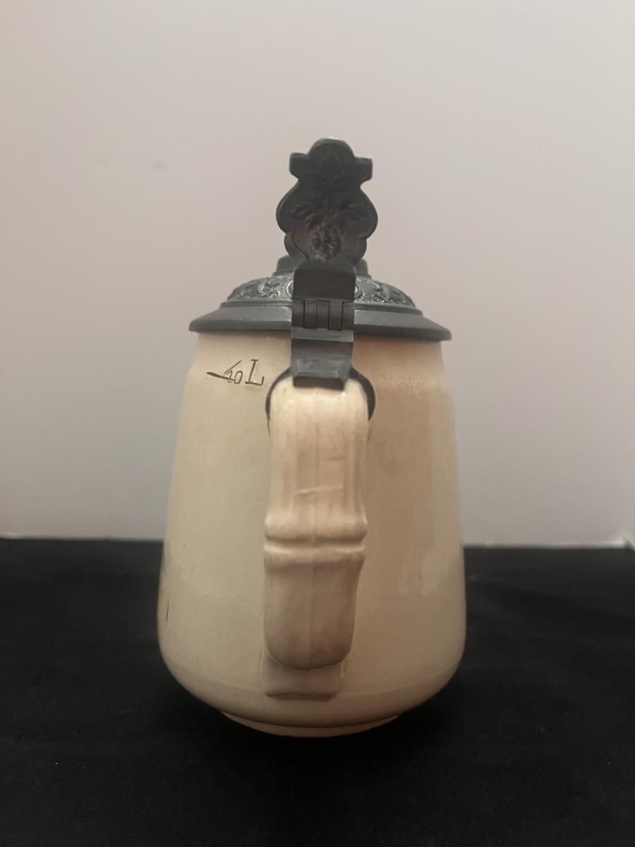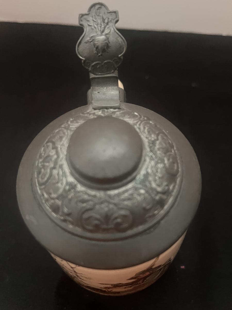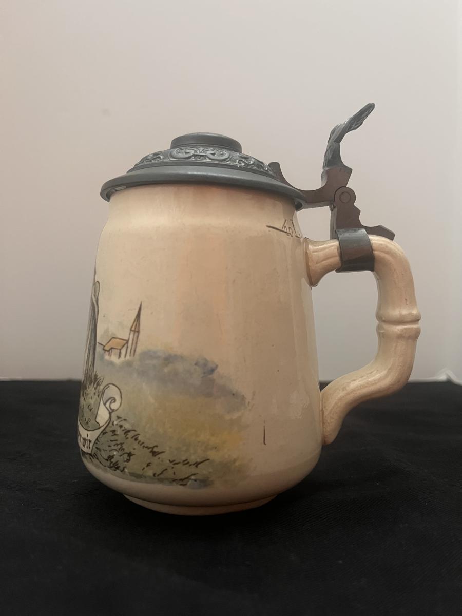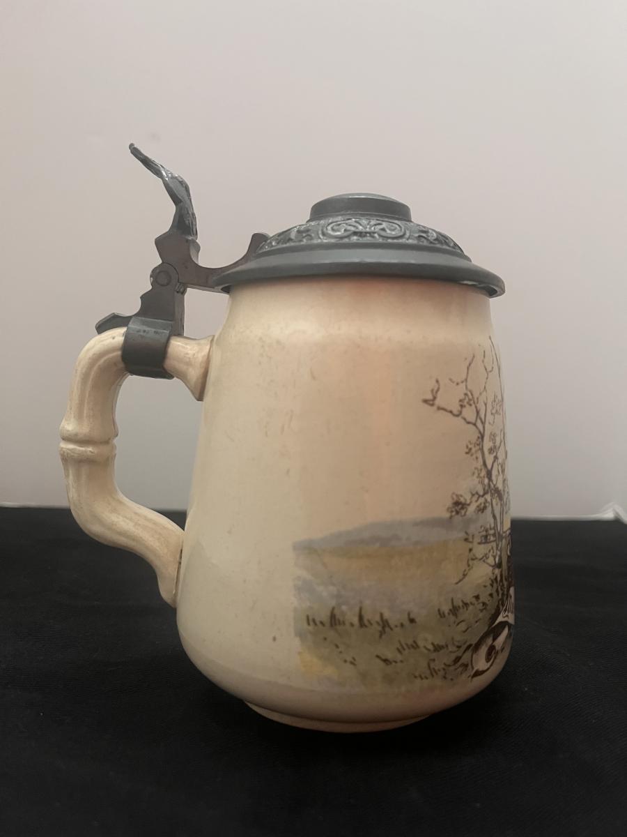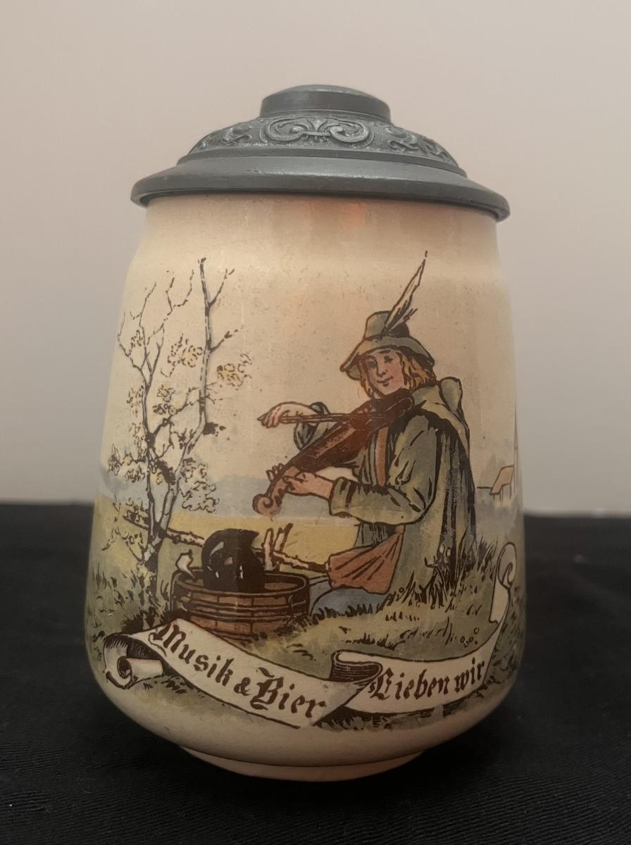 A small print under glaze stein by V and B Mettlach. One of a set of three to go with master stein 2348