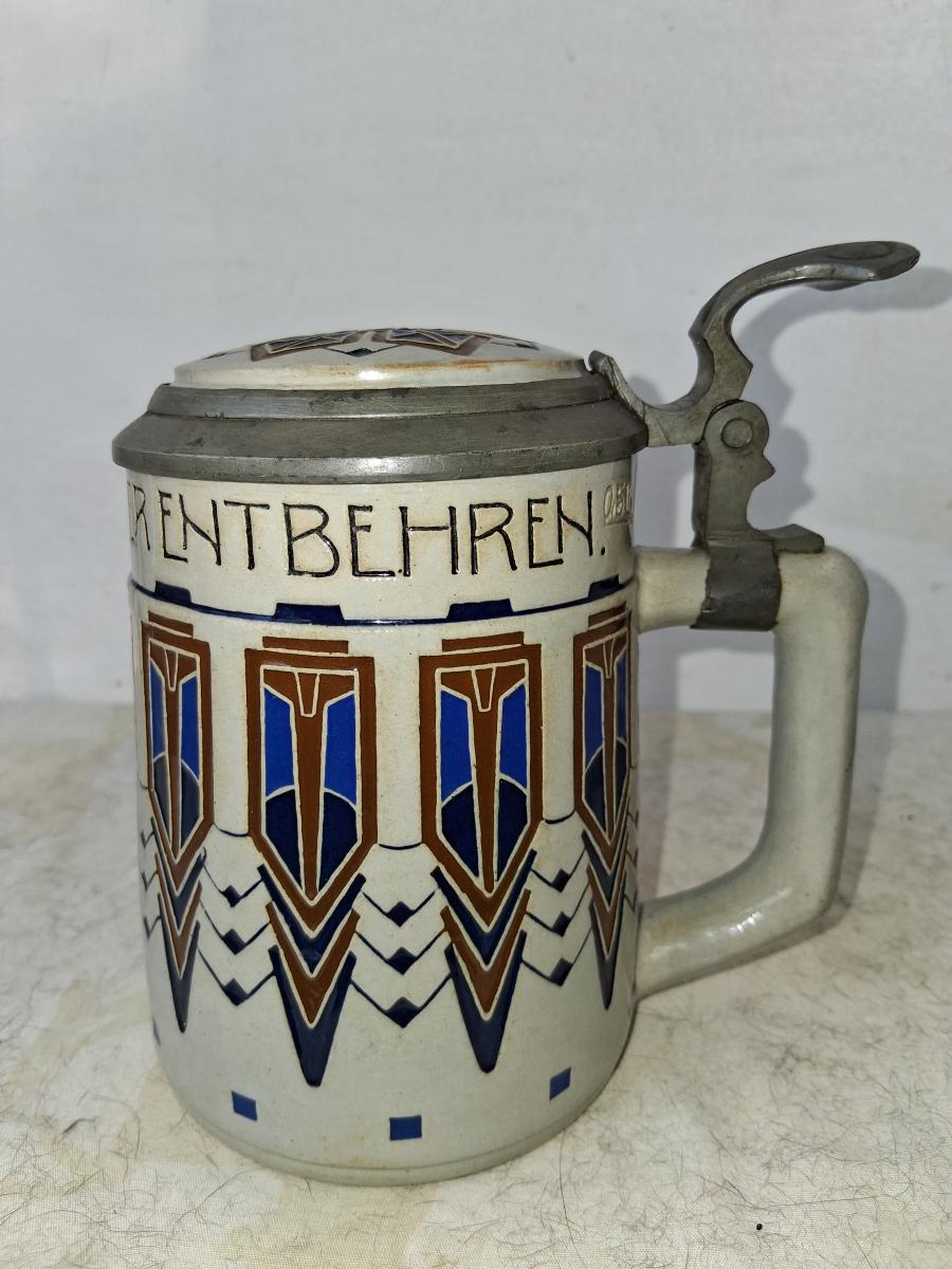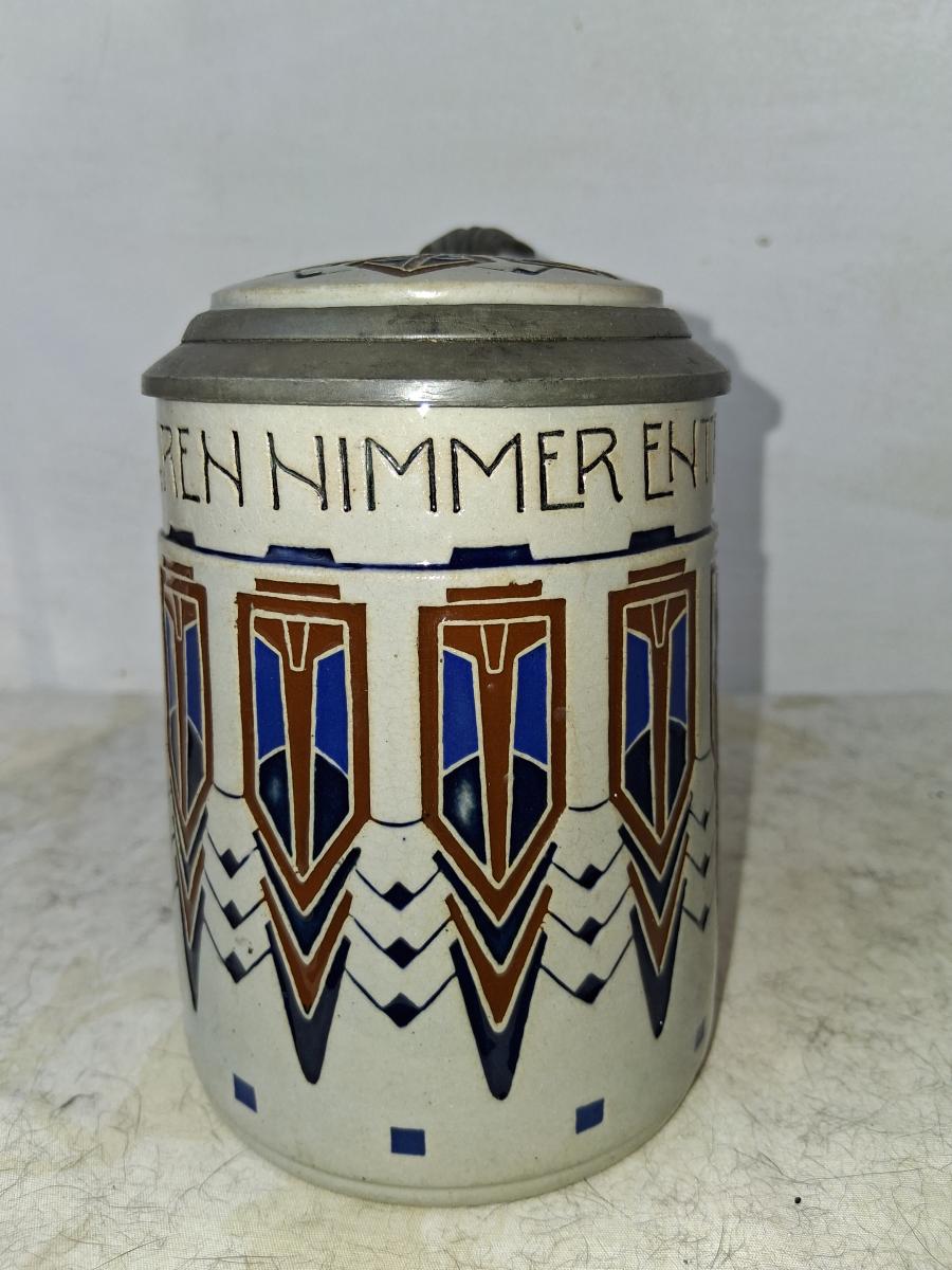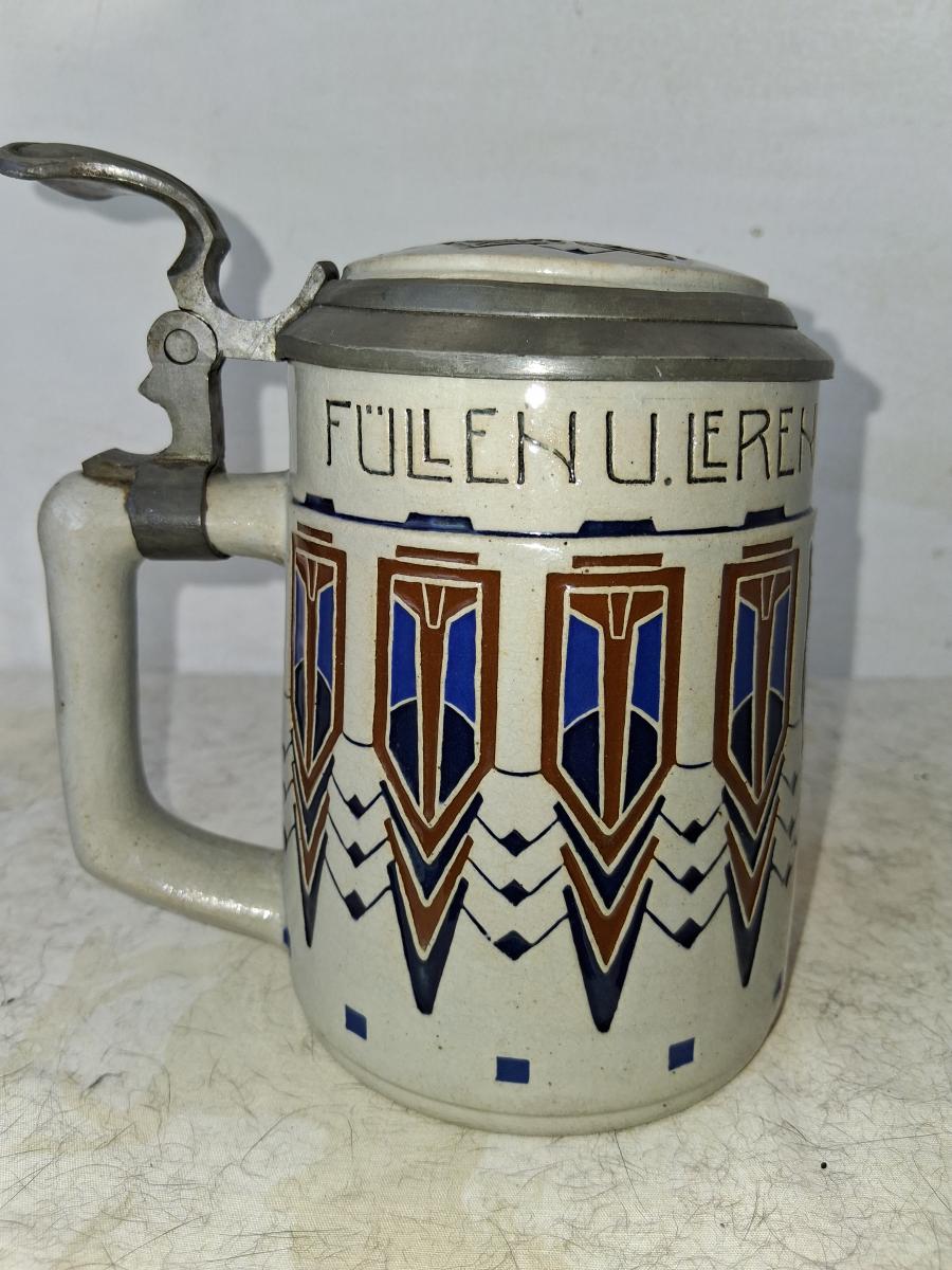Impressed design. "Fllen u. leeren nimmer entbehren." (Fill up and empty, never be without it.) (TBSL)