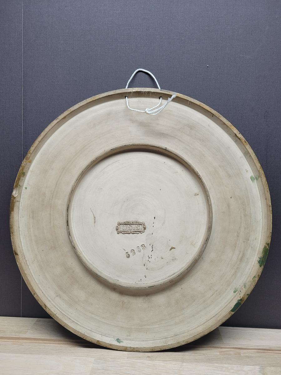 A fantastic wall plaque, produced in the last quarter of the 19th century by the wellknown majolica producer Wilhelm Schiller & Sohn (WS&S). Diameter: 34cm (13.4in) Model nr: 5263