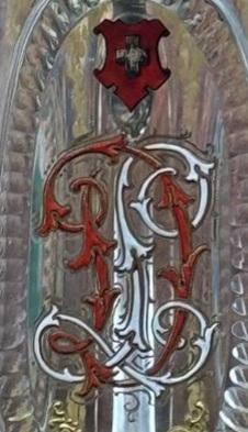 The surface of the mug is decorated with heraldic symbols. In the center is the personal monogram of the recipient of the gift Lucien Dubois in the form of an interlacing of two letters "L" and "D". At the time of 1891, he was the heir to the ancient French DuBois family, famous for creating mechanical watches in Switzerland. DuBois & Fils house has been producing mechanical watches since 1785. To the left of the monogram is the DuBois family coat of arms in the form of a green shield with a vertical black stripe. To the right of the monogram is the coat of arms of the town of Le Brenet. The lower part of the coat of arms depicts the legendary waterfall on the Doubs River, which flows in the town of Les Brenes. The inlaid lid is decorated with a composition based on the coat of arms of Riga.