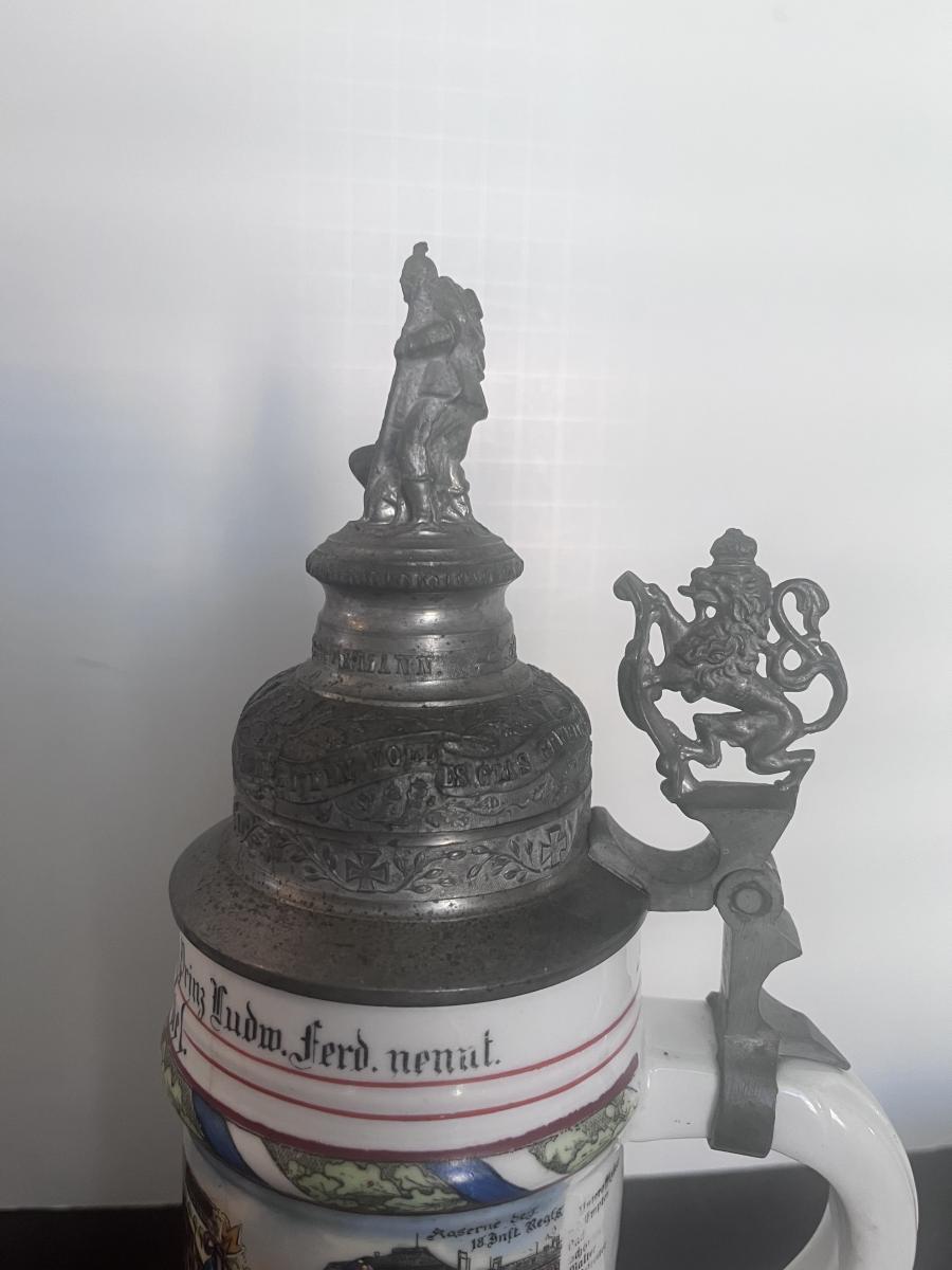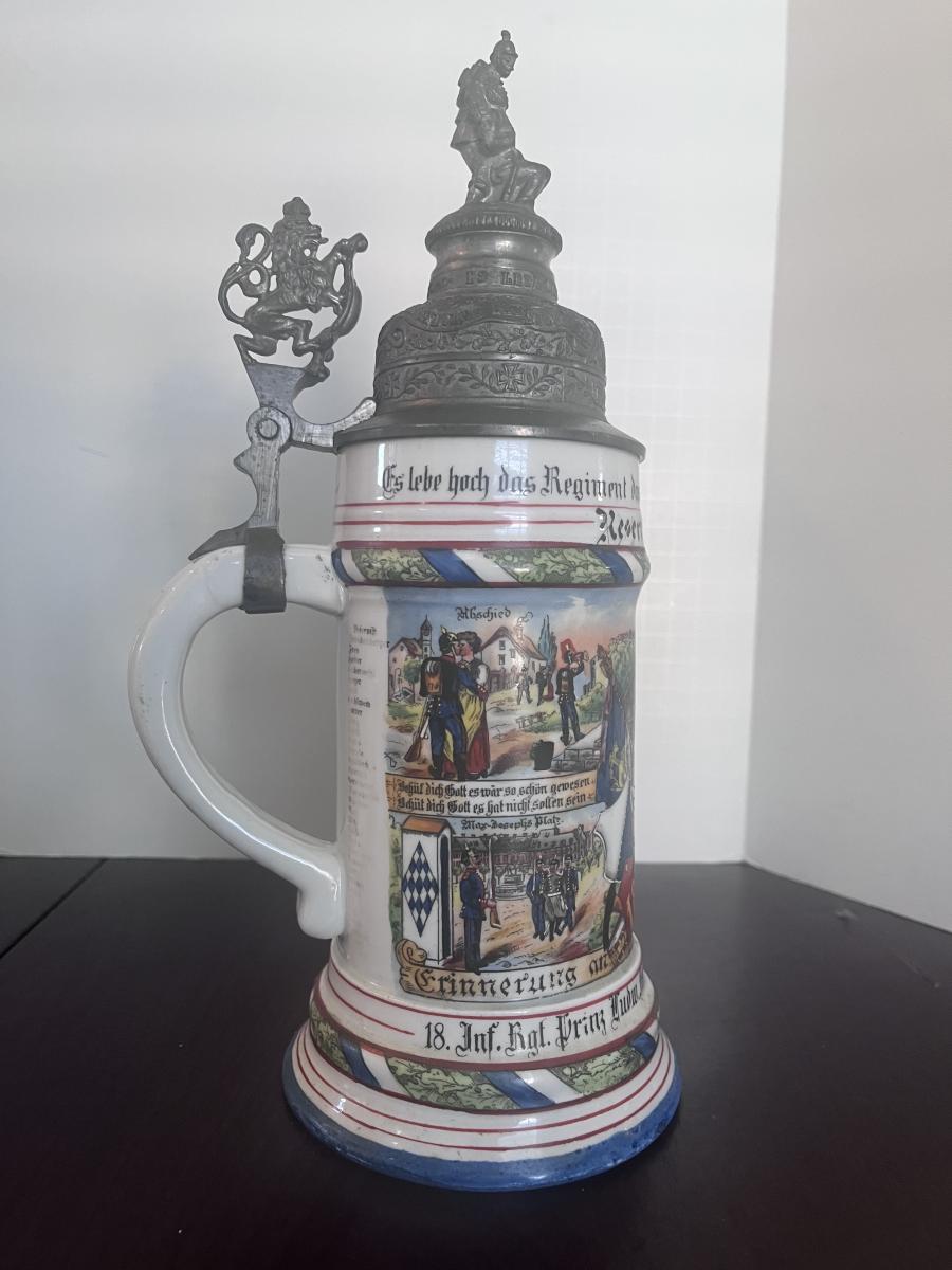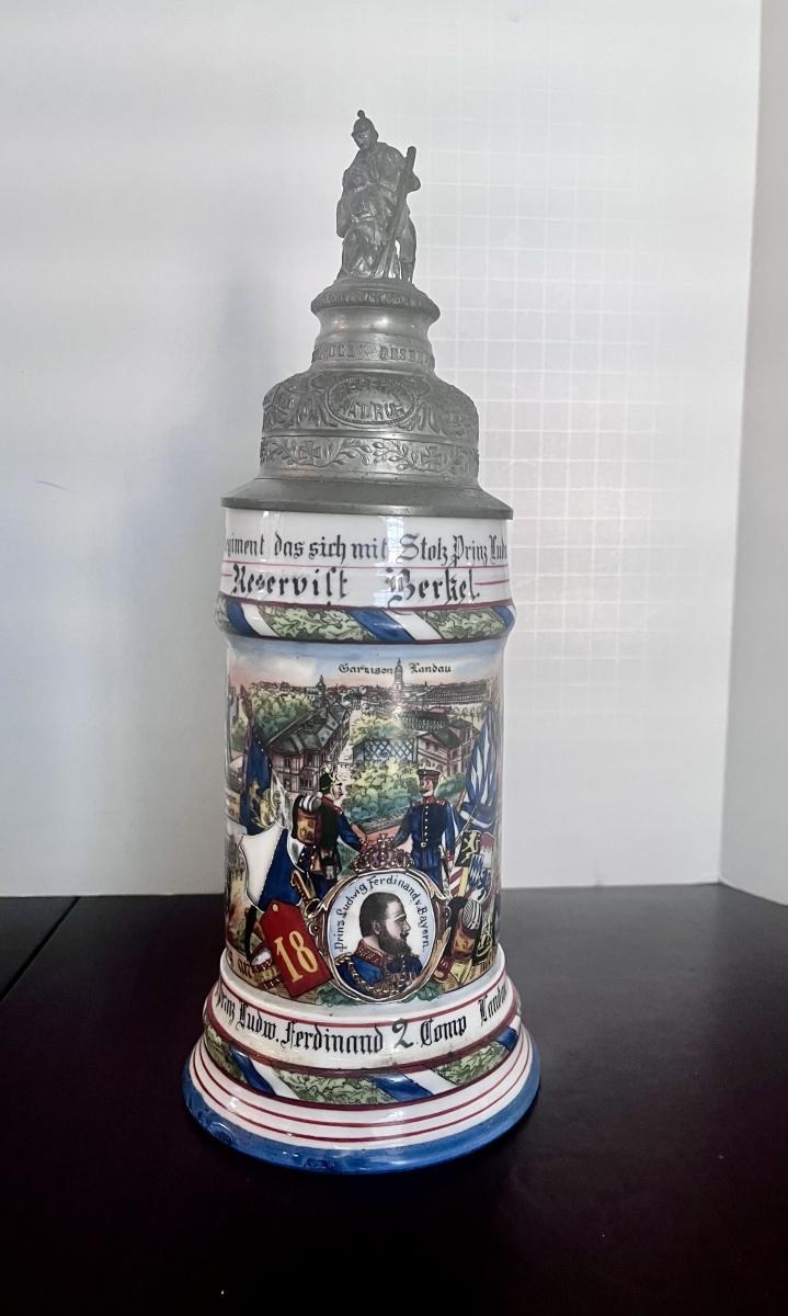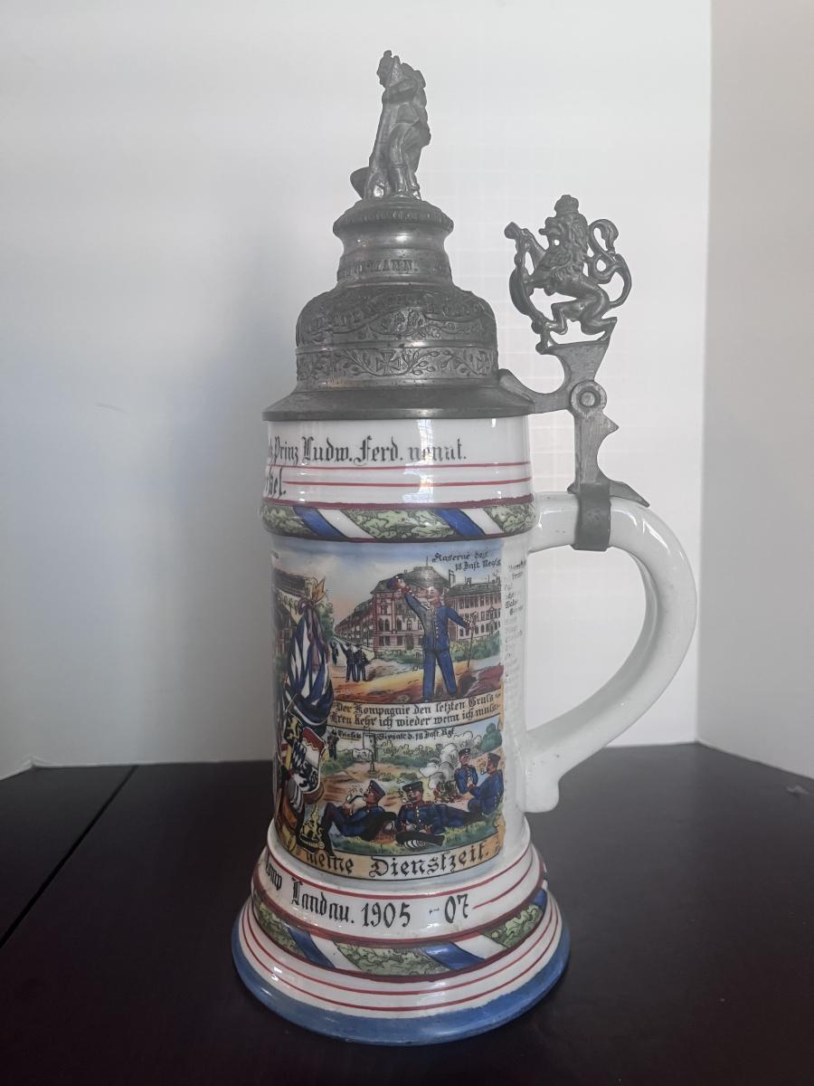 Porcelain Reservist stein for serving 1905-1907. Four side panels..