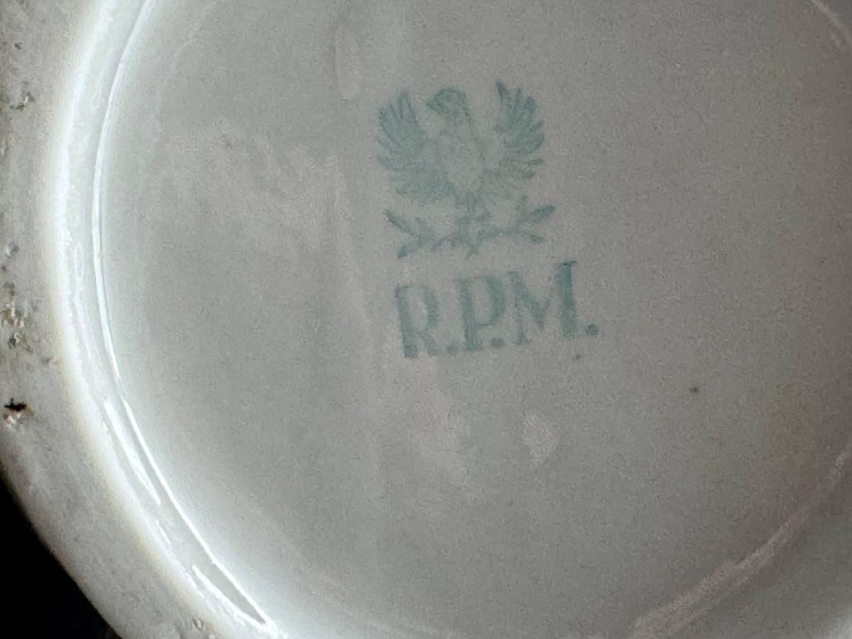The R.P.M. Manufactory was founded in 1955 in the city of Küps (Bavaria) and specialized in creating decorative porcelain products. The name of the factory R.P.M. consciously echoed the famous Berlin manufactory K.P.M. (Konigliche Porzellanmanufaktur, founded in 1751). This sometimes led customers astray. It should be understood that in 1955, when the R.P.M. manufactory was created, Berlin was the capital of the GDR, which was part of the camp of socialist states oriented towards the USSR. At the same time, Bavaria fell into the post-war occupation zone of the United States and became part of the Federal Republic of Germany. On January 1, 1973, R.P.M. merged with another similar manufacturer. After this period, the appearance of the stamp changed.