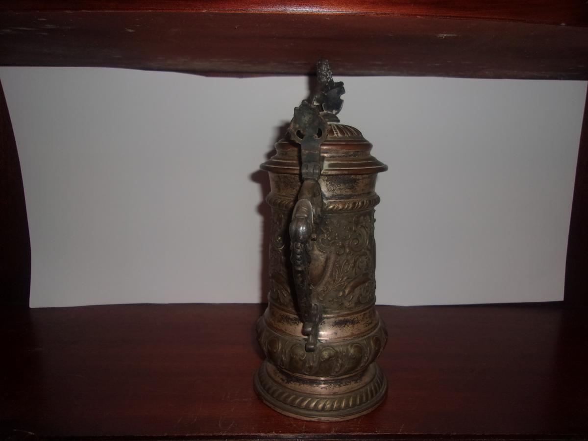 The translation of the engraving I have is "Presented to Leader (?) Jacob Groh by the men of the Great German 25th Division on the occasion of his 25th Wedding Anniversary, 1897, Frankfurt, Germany." The 25th was a Hessian Division, the finial is the Hessian lion and shield.