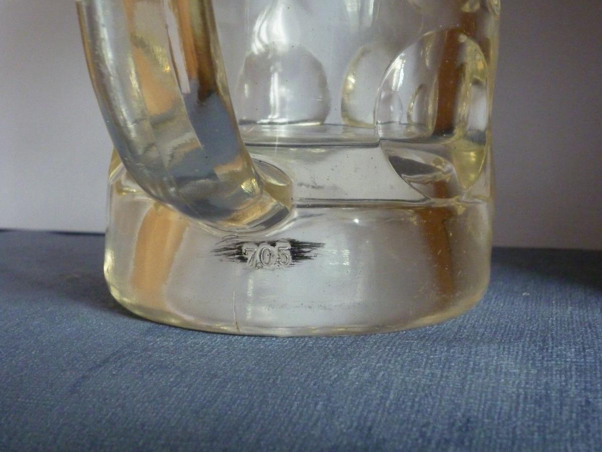 A .4lt Pressed glass stein from the Saxon Glass Factory in Radeberg with a SG crown stamp used from 1897.