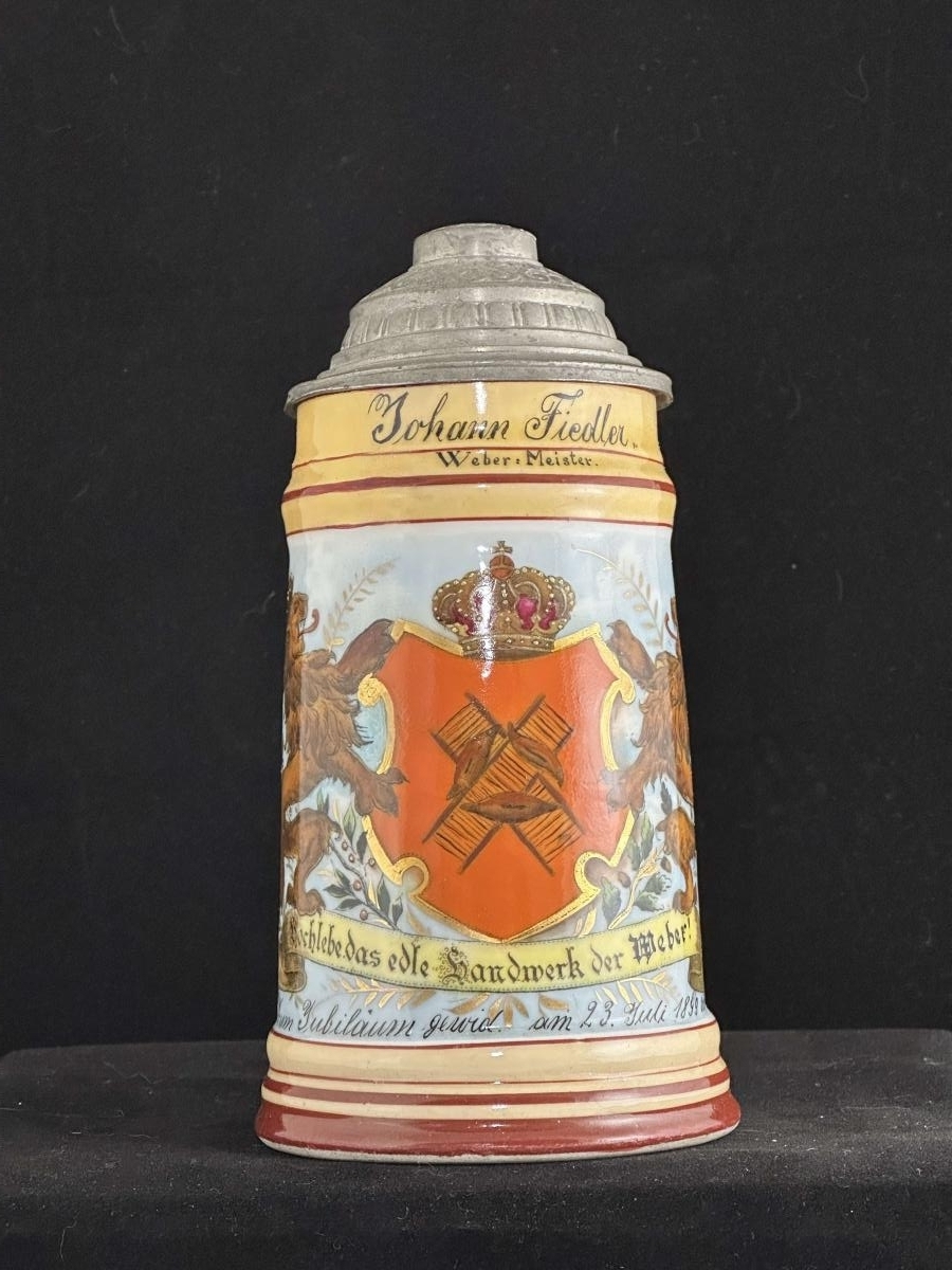 1/2 liter occupational stein named to Master Weaver Johann Fiedler