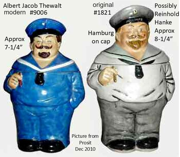 Sailor #1821 not in the BSL, I have seen some with different handles and some with a music box base. I think this one may have been made by Reinhold Hanke because of the handle and capacity mark. Albert Jacob Thewalt made a sailor #9006 but smaller, this one is around 8-1/4".