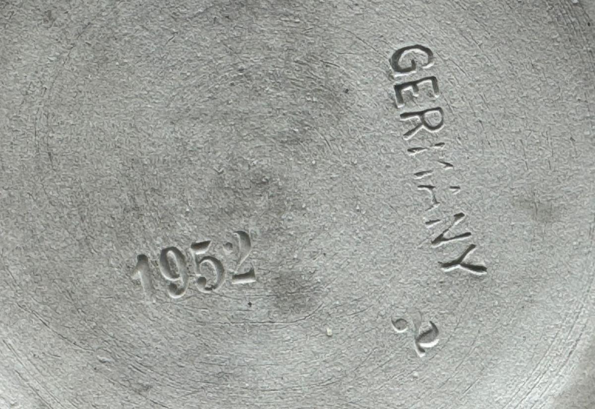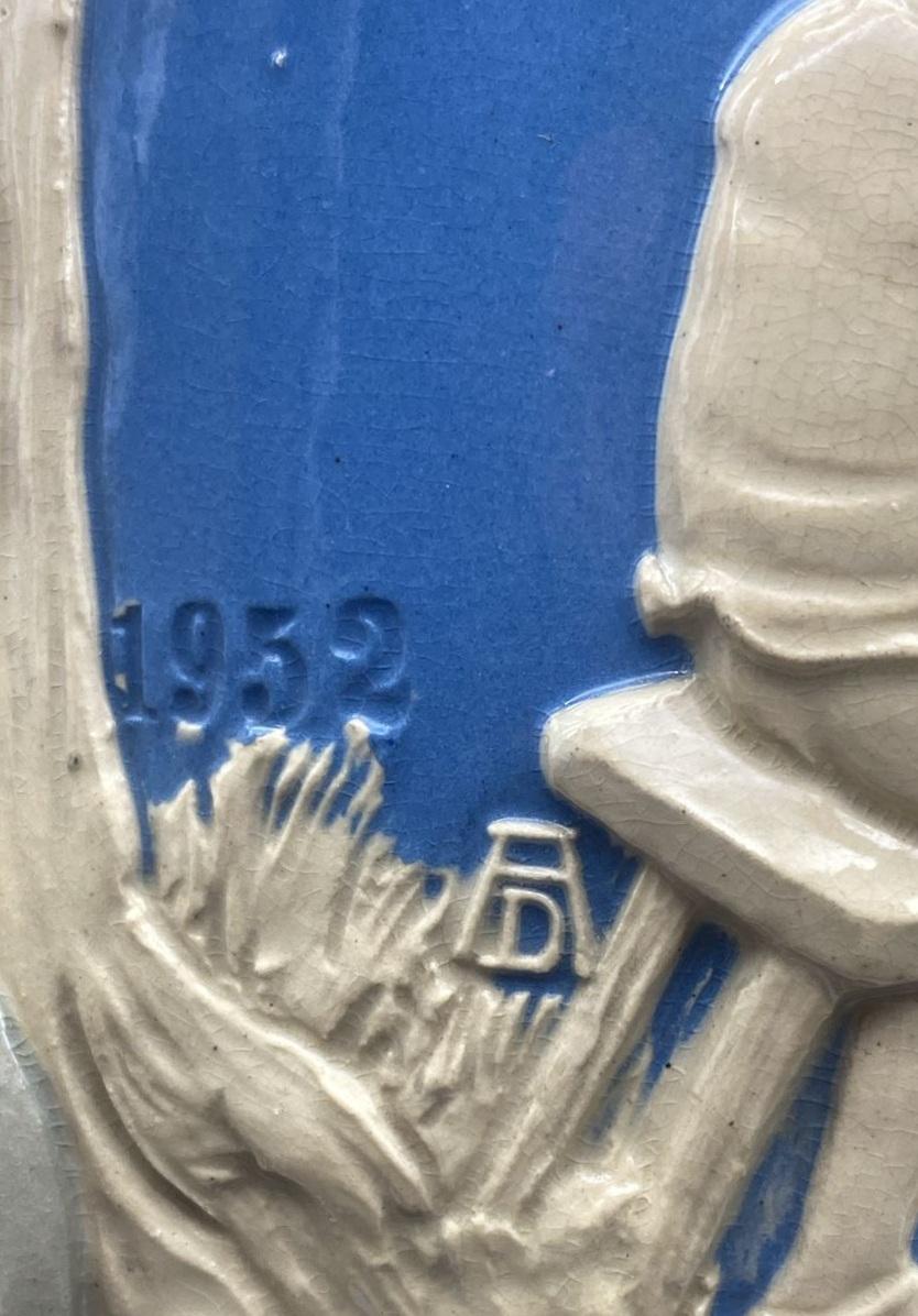 The management of the RH manufactory invited the artist Adolph Dekker to develop the design of this jug. This is evidenced by the artist's signature in the form of a monogram of two letters: "D" under "A". It can be found in the lower part of the jug, to the right of the handle. The catalog number for the 1952 shape is also located there. This jug is listed under this number in the RH manufactory's product catalog.