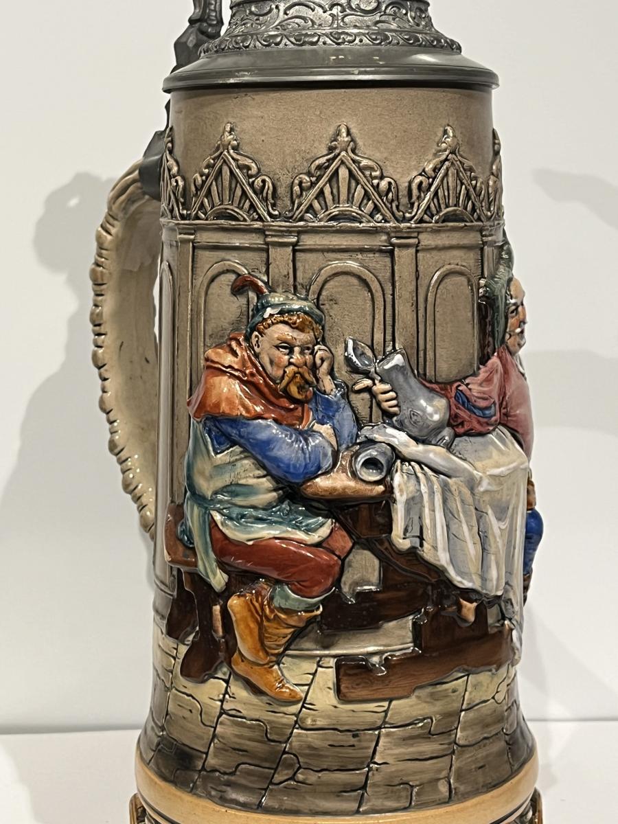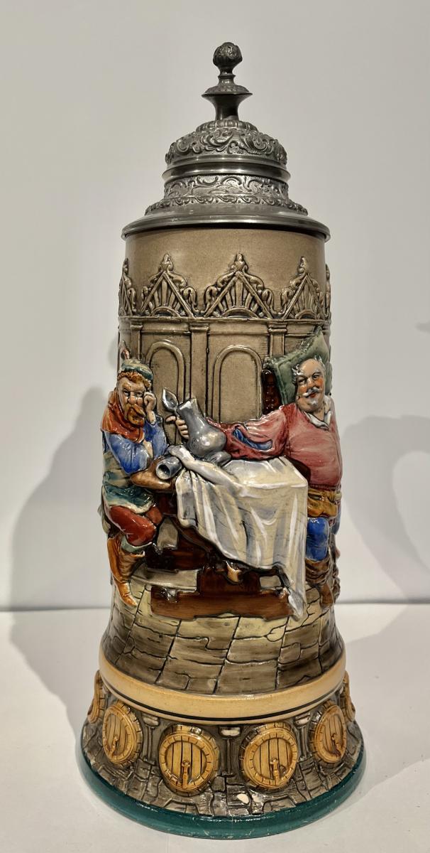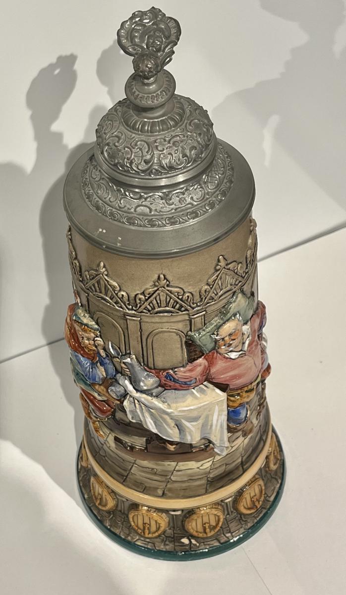 Pottery, high relief 1.0 Liter with a cast pewter lid