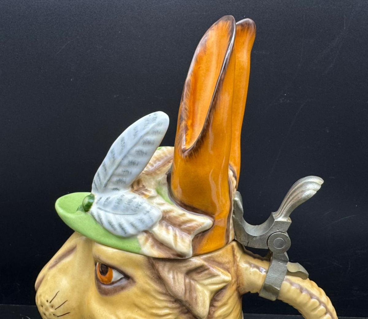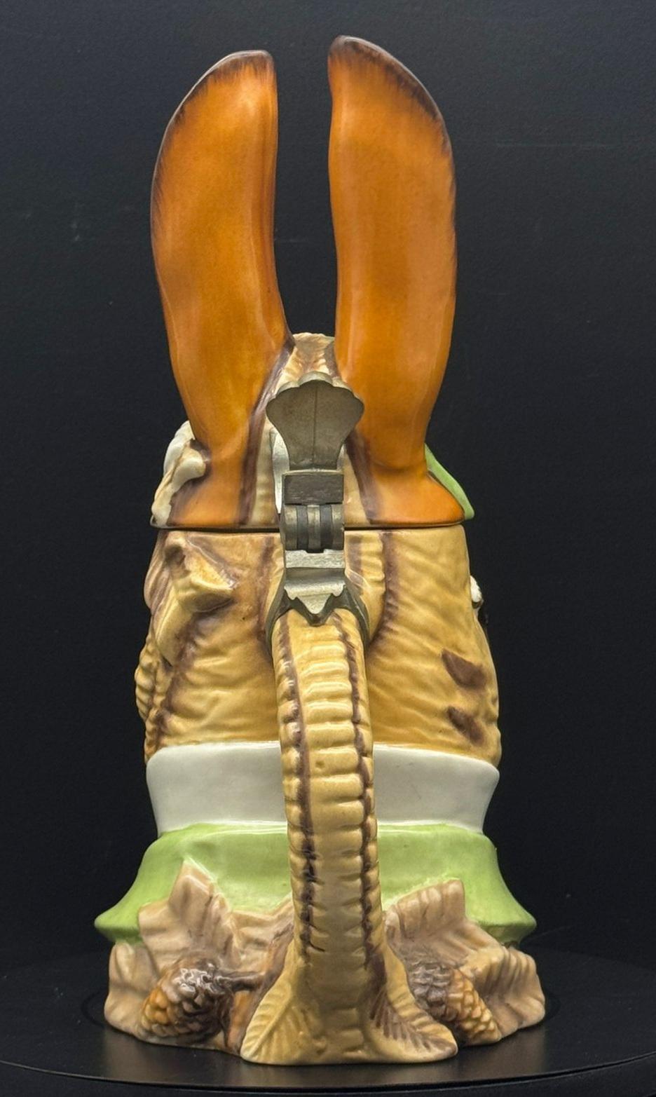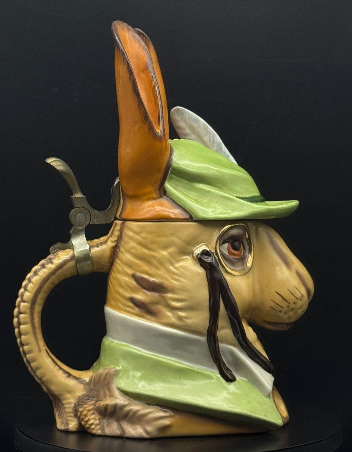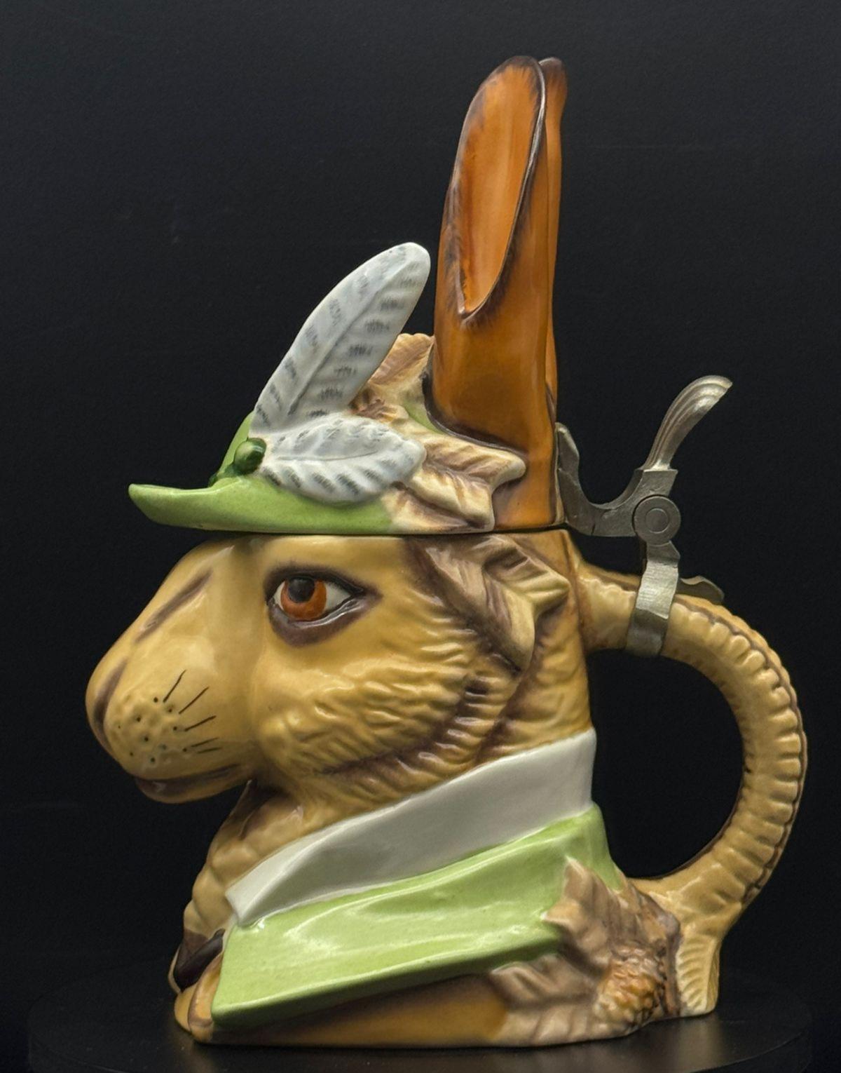 It is important to emphasize that the "Hunter Rabbit" mug in its current form is essentially a product of late 19th-century design. Moreover, it is listed as number 53 in the catalog of shaped beer mugs produced by Schierholz & Sohn. You can view the original version in the catalog by clicking on this link: [link]