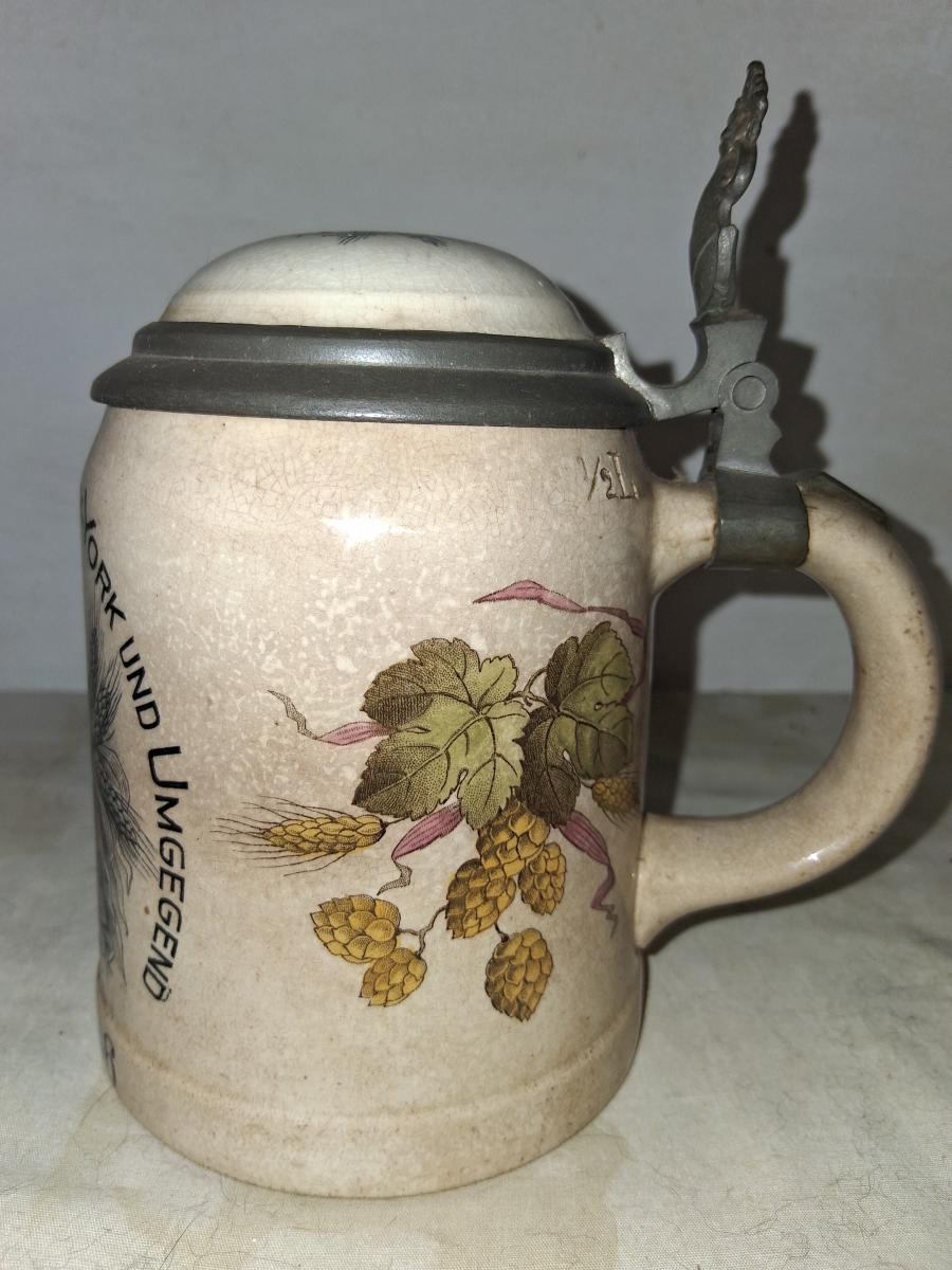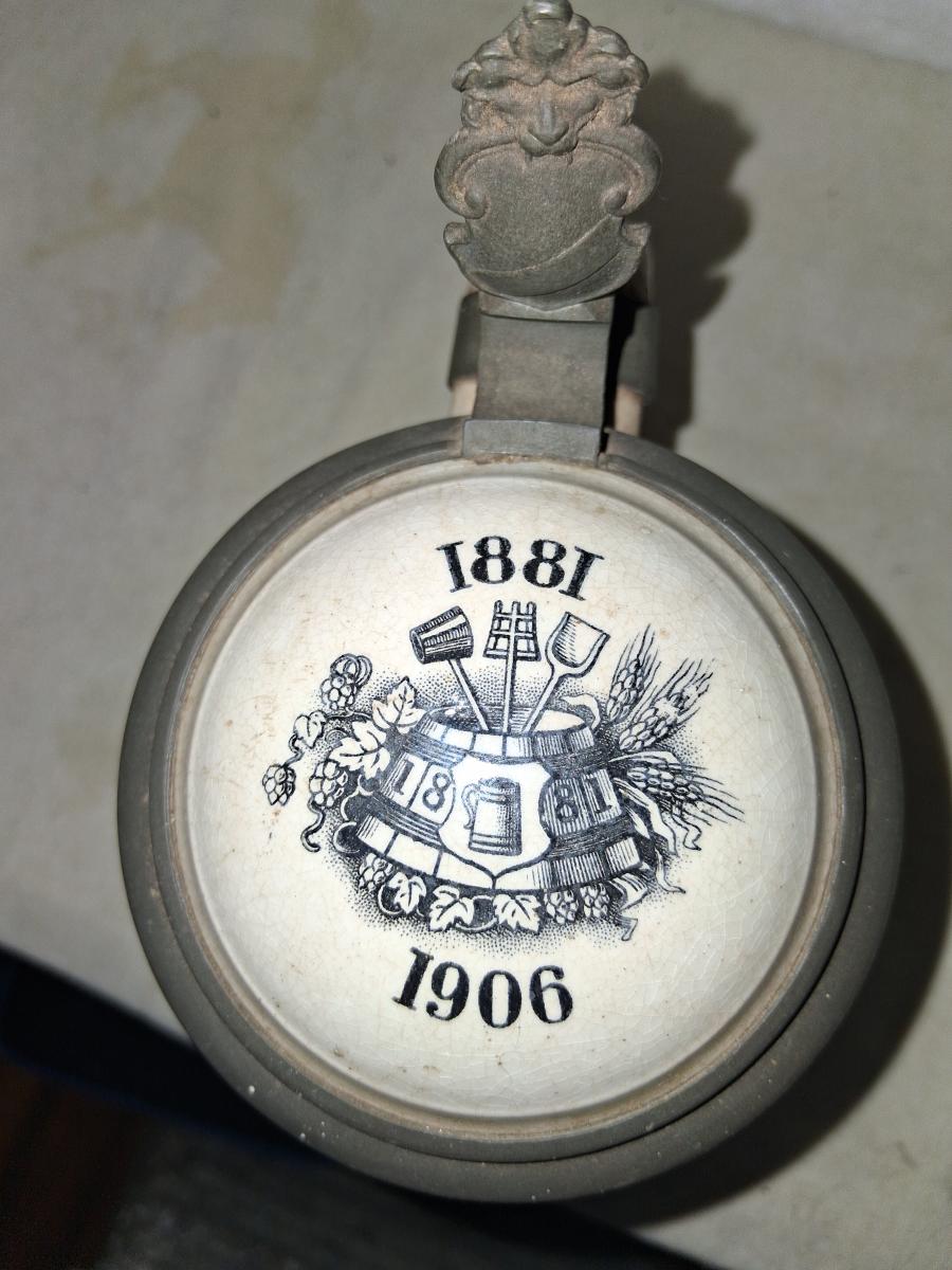 The text translates to " Brewer's Association of New York and surrounding areas" Apparently done for their 25th anniversary, 1881 - 1906. A numer of brewery steins were turned out using the 1526 mold.