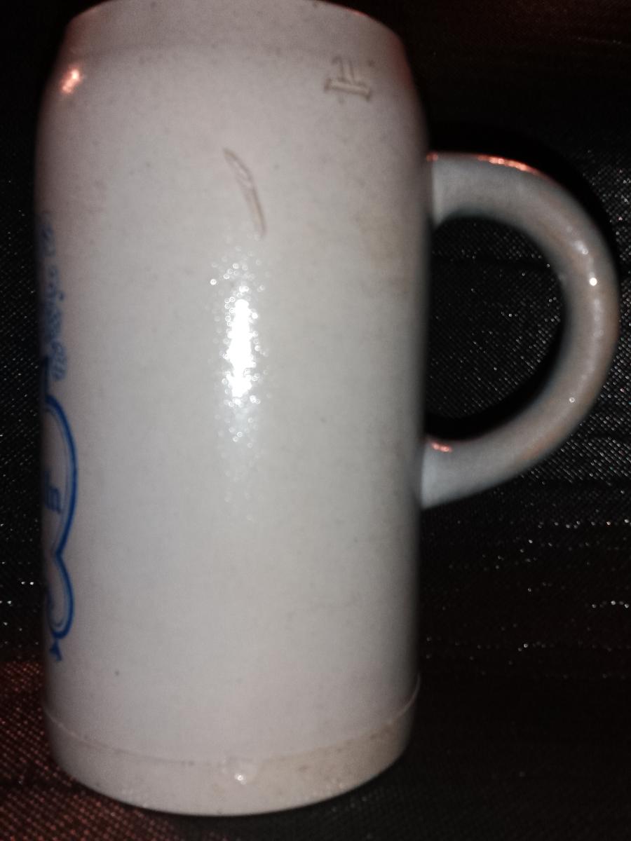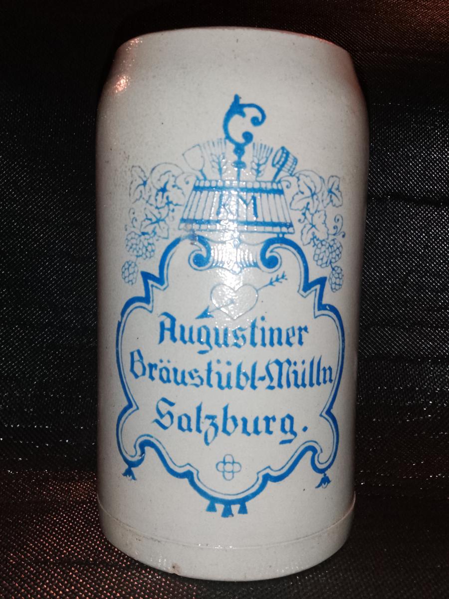 Austria, Salzburg, Mülln; Brewery Stein, salt-glazed stoneware with blue tranferprint saying: