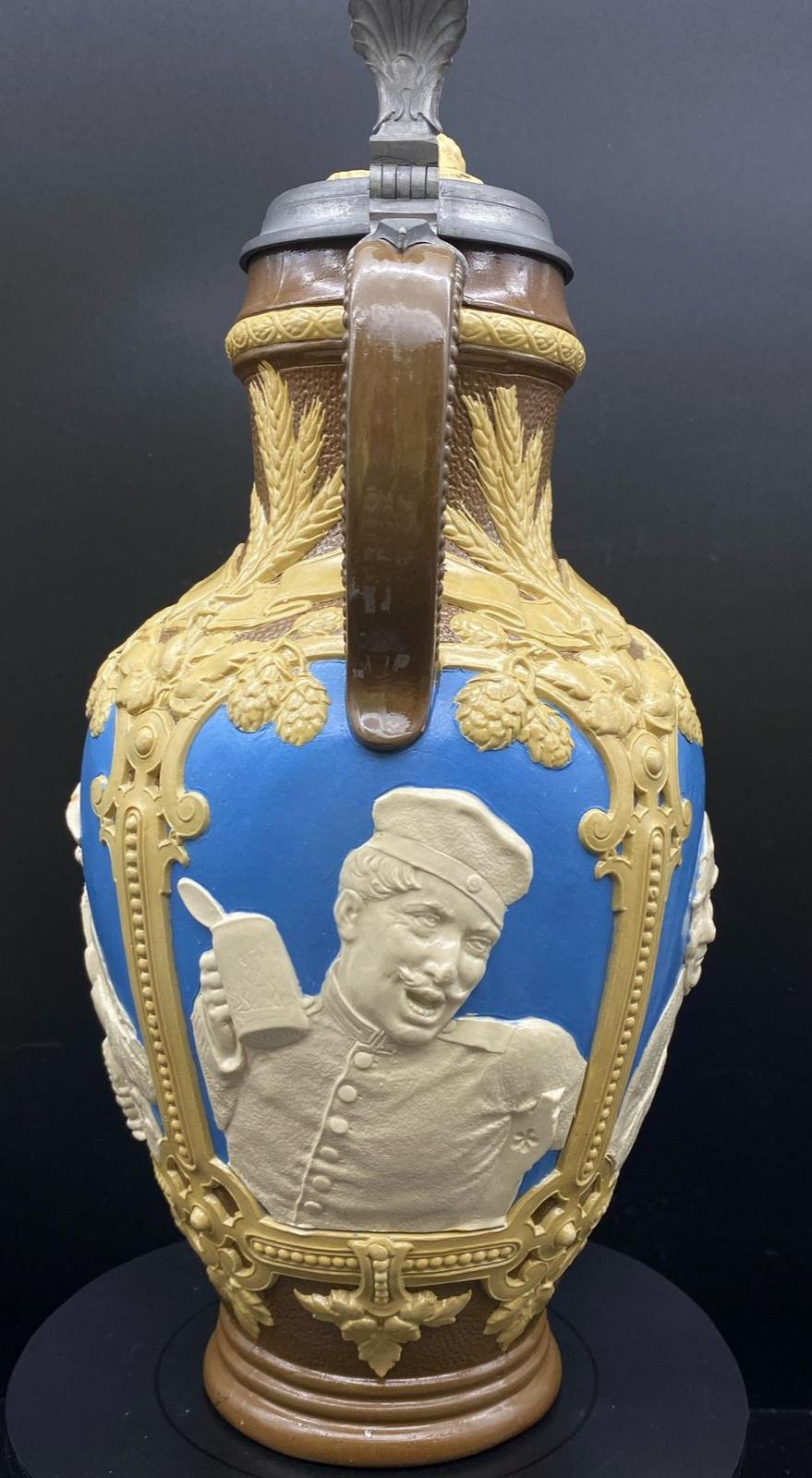 On the "Beer Stein Library" portal, in the "Mettlach Stein Catalog" section, there is no mention of the authorship of Christian Warth in the description of the item numbered 1736 (!). See the link: