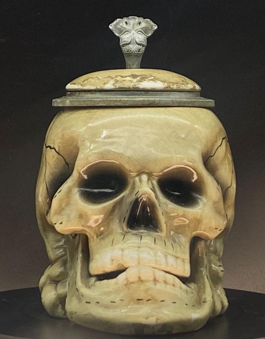 However, in those years there was a demand for only two mug shapes in the form of human skulls. This is the form of "Der menschliche Schädel und das Buch des Wissens" ("The human skull and the Book of Knowledge"), which has become universal for students and all adherents of science.