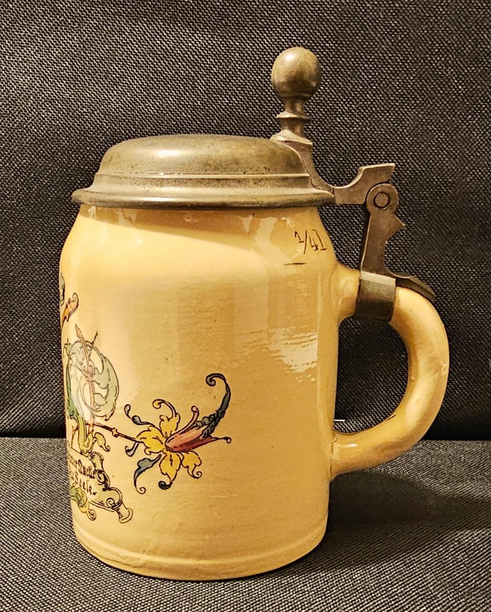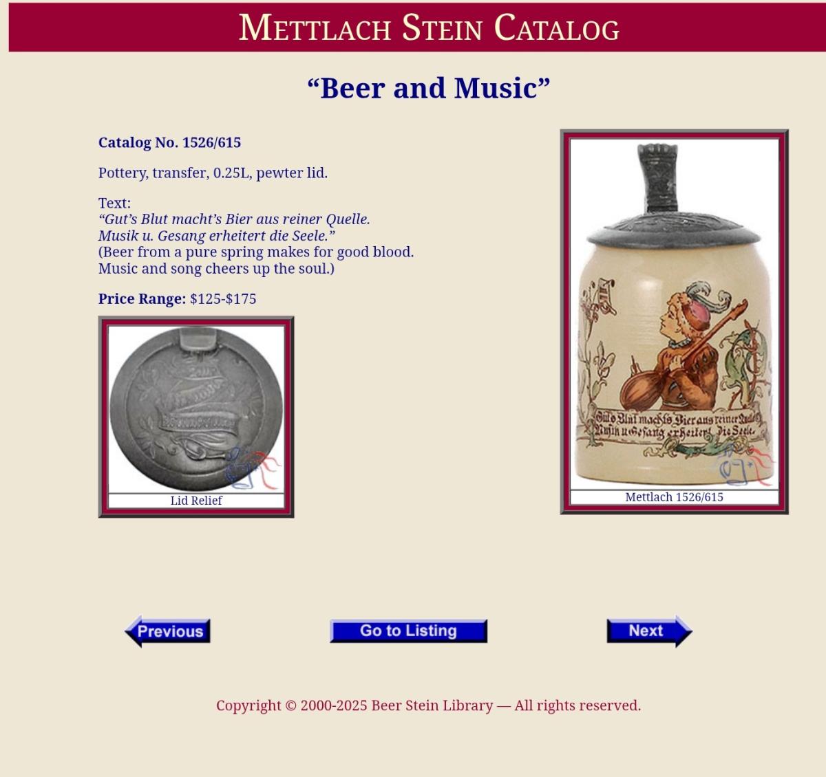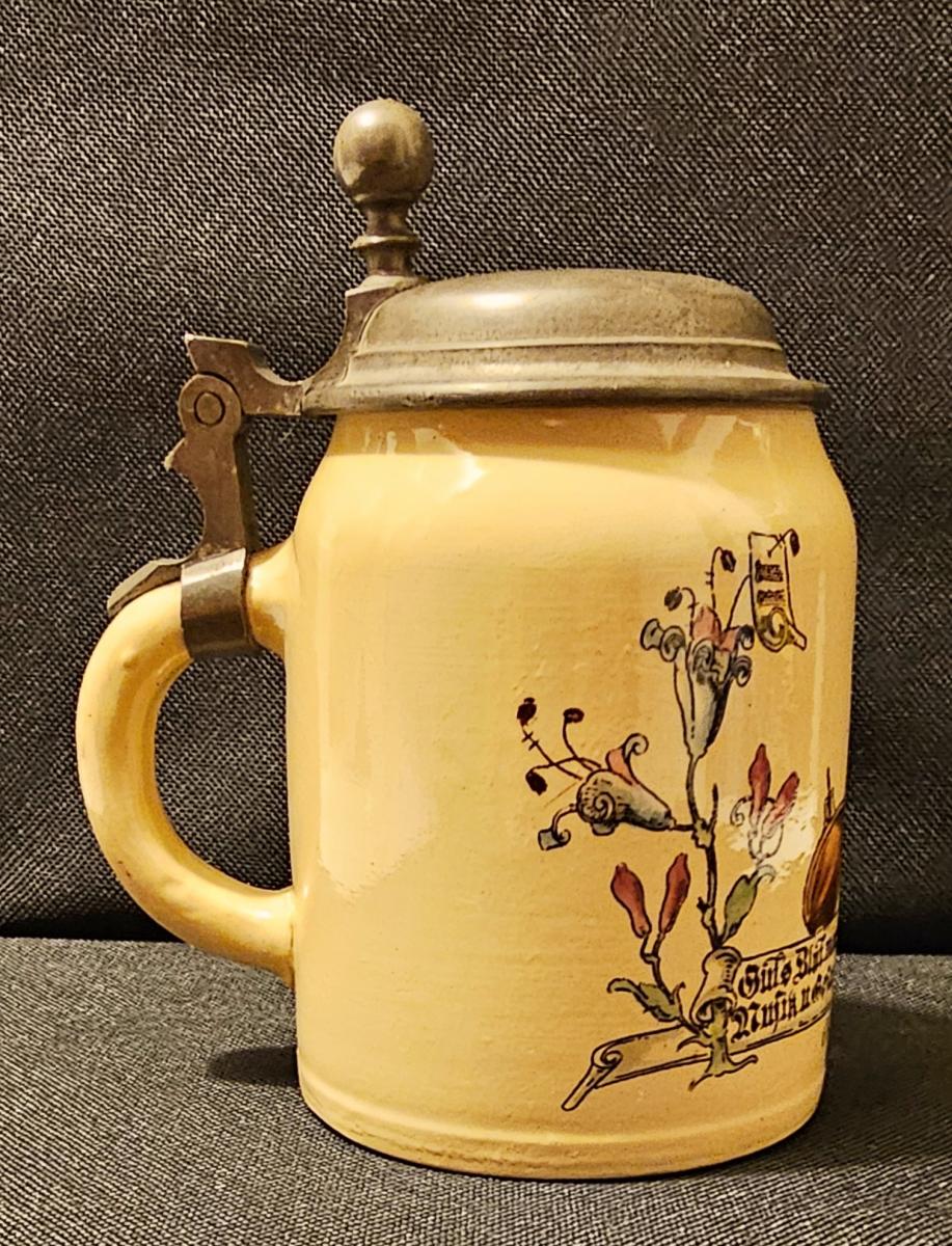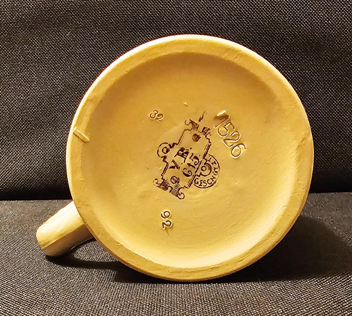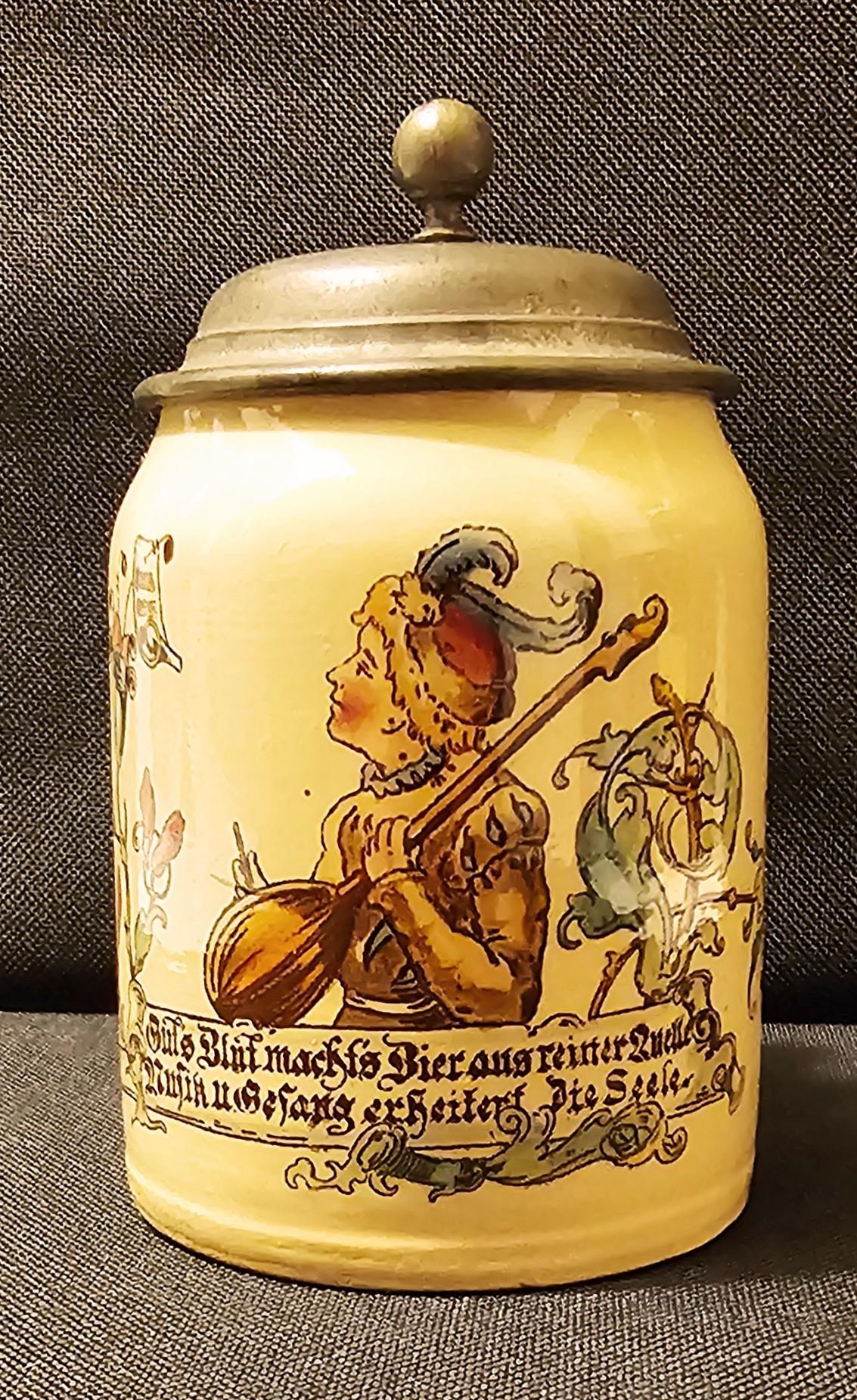 Mettlach 1/4 liter stein "Beer and Music" Text translates to "Beer from a pure spring makes for good blood. Music and song cheers up the soul."