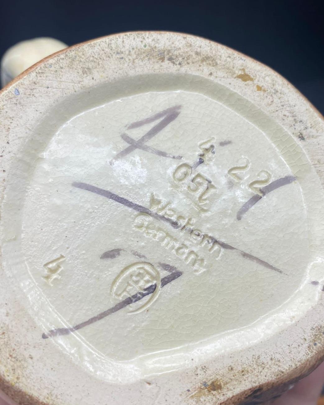 This curly mug from the Eckhardt & Engler factory has become an official reproduction of an earlier mold from the Rosskopf & Gerz manufactory of the same number 422. See the link: [link]