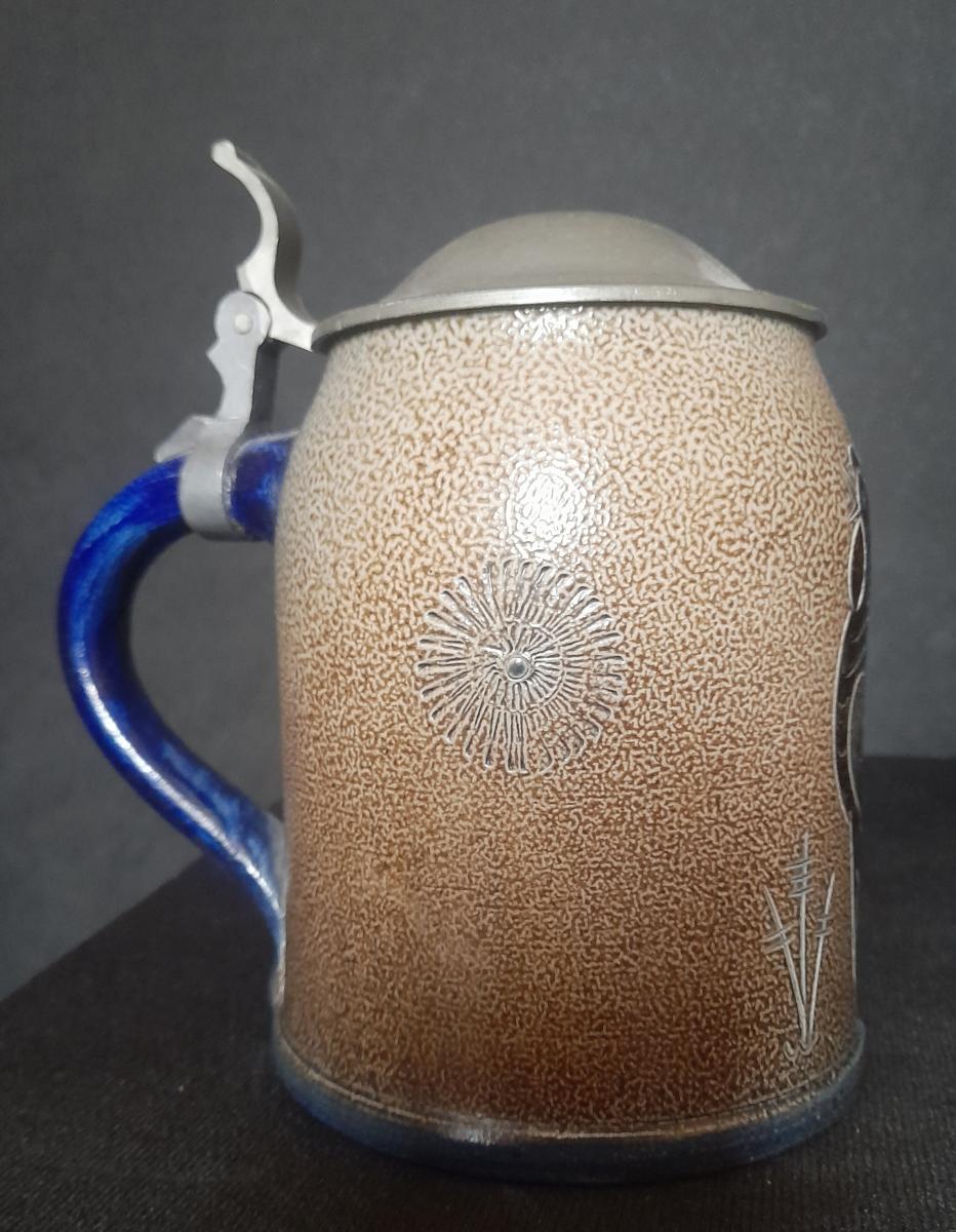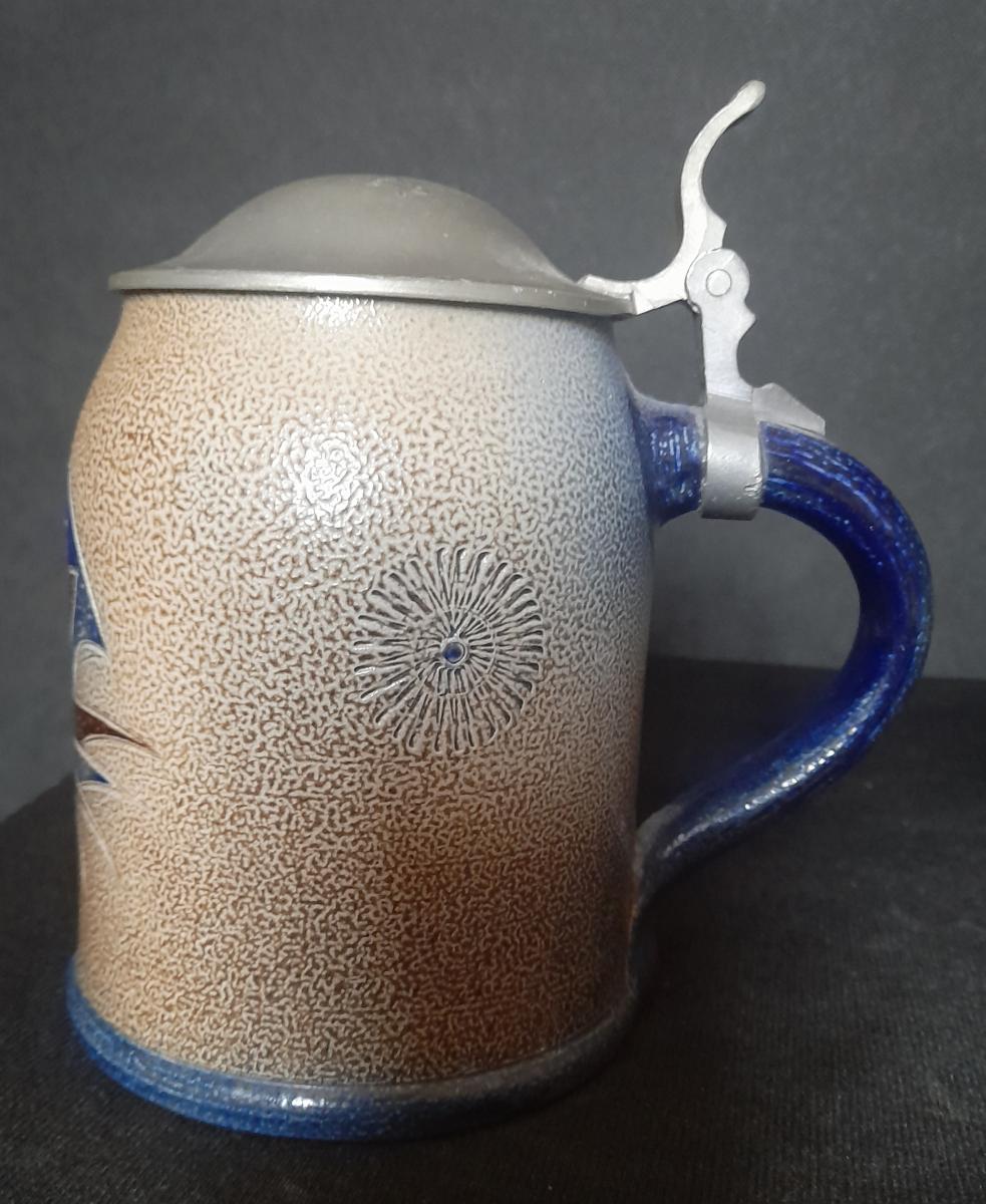 The mug was designed by Wim Mühlendyck. His art ceramics factory was located in the town of Herrenzhausen (Rhineland-Palatinate).