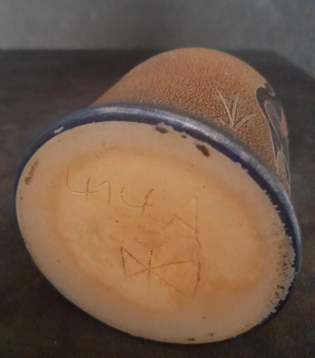 came from the products of the German Workers' Union. This association released the exhibition "Form without ornament" in 1924. Mühlendyk followed the German werkbund and left the unpainted gray surface of his salt-glazed vessels. The functionality of the products was more important to him than their artistic design. Nevertheless, Mulendik was looking for decoration options. Instead of the typical blue coloring of porcelain stoneware, he practiced his own carved patterns. He later described it as the “real birth hour" of his pottery workshop.