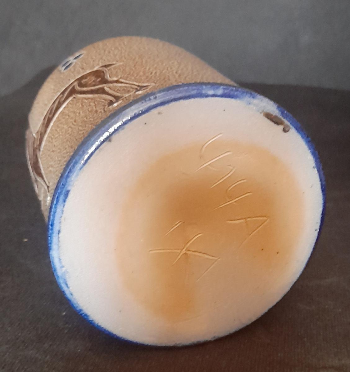 The mug was designed by Wim Mühlendyck. His art ceramics factory was located in the town of Herrenzhausen (Rhineland-Palatinate).