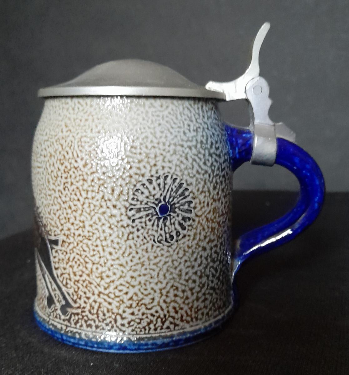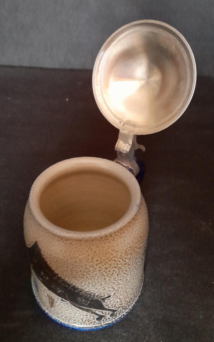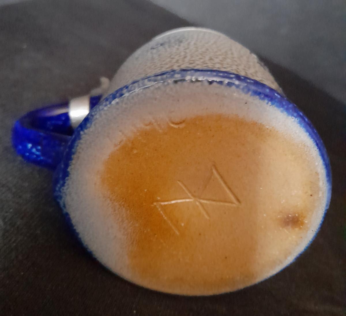 The mug was designed by Wim Mühlendyck. His art ceramics factory was located in the town of Herrenzhausen (Rhineland-Palatinate).