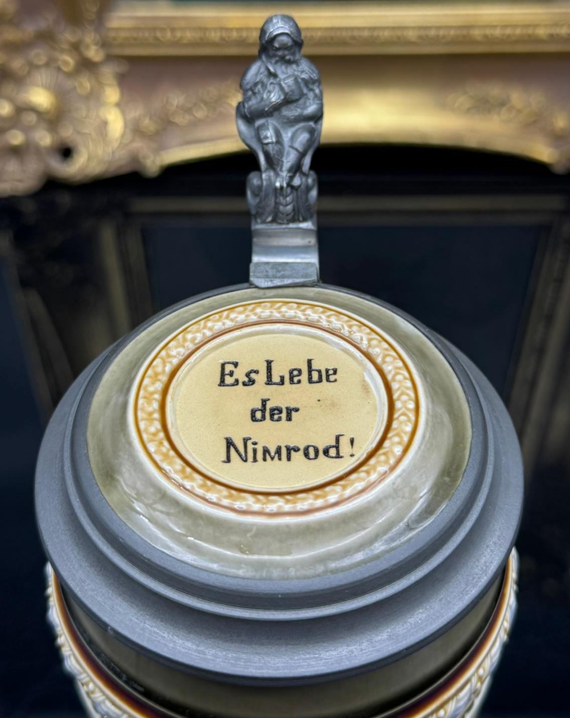 However, the phrase on the ceramic inlay of the lid highlights the overall meaning. Translated from German, it means "Long live Nimrod!".