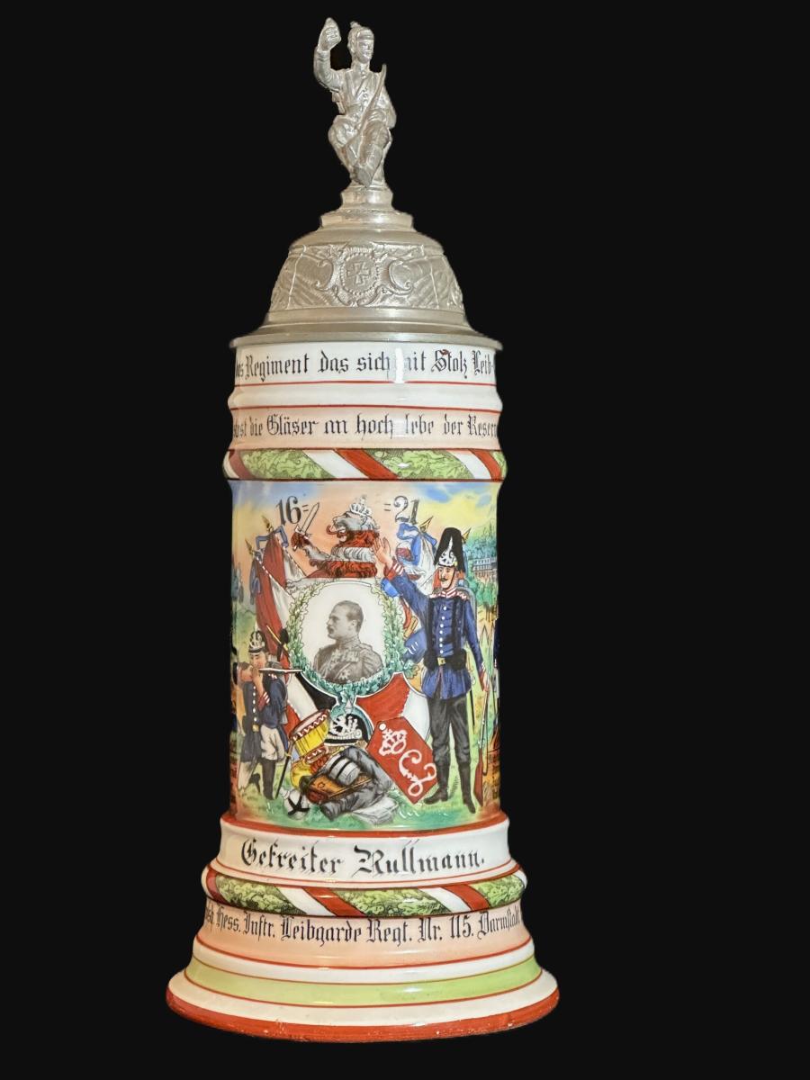It was the oldest German infantry unit and traces its roots to March 11, 1621, when Landgrave Ludwig V ordered the creation of an Infantry unit which was named the “Dressler Company”. After nearly 200 years the unit underwent several name changes. In 1806, after Hesse-Darmstadt had been promoted to a Grand-Duchy the unit was awarded the title Life Guard Regiment. Over the next 100 years, the unit underwent additional reorganizations and name changes. In November 1906, the name changed once again, this time to Life Guard Infantry Regiment (1st Grand Ducal Hessian) No. 115.