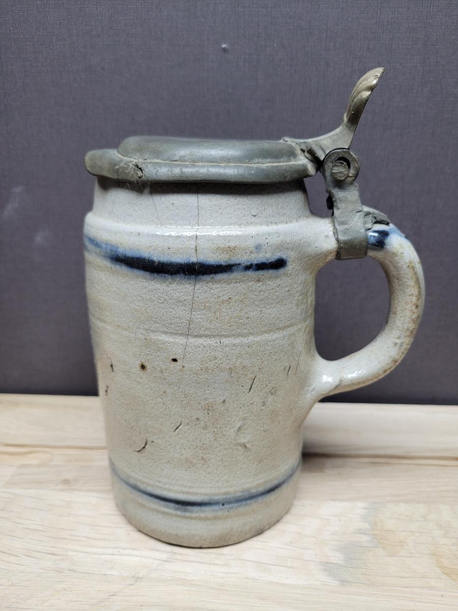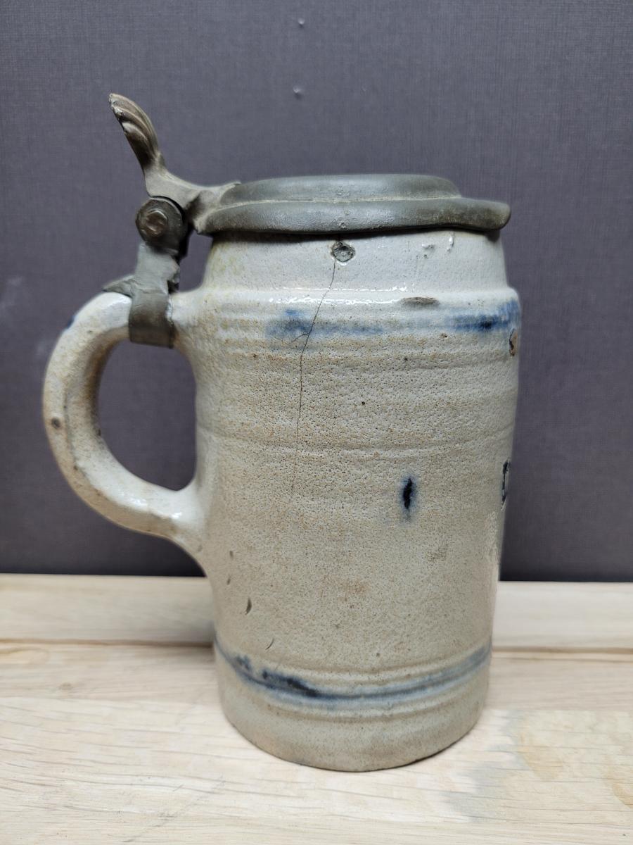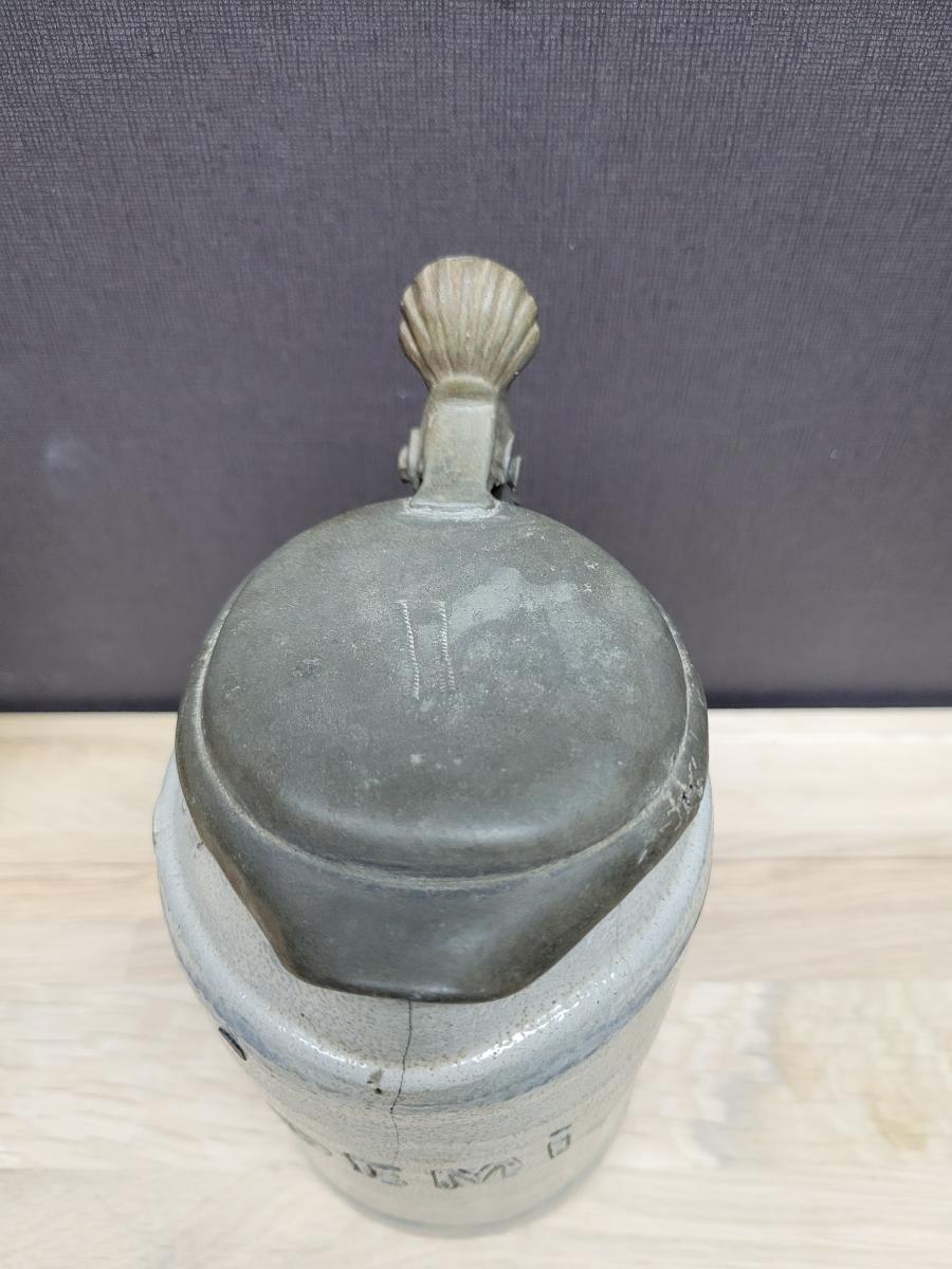 The inside of the pewter lid has remains of a pewterer's mark. I am until now not able to identify the pewterer.