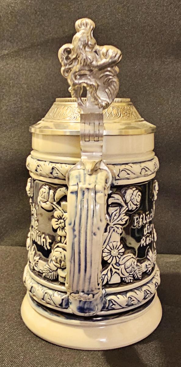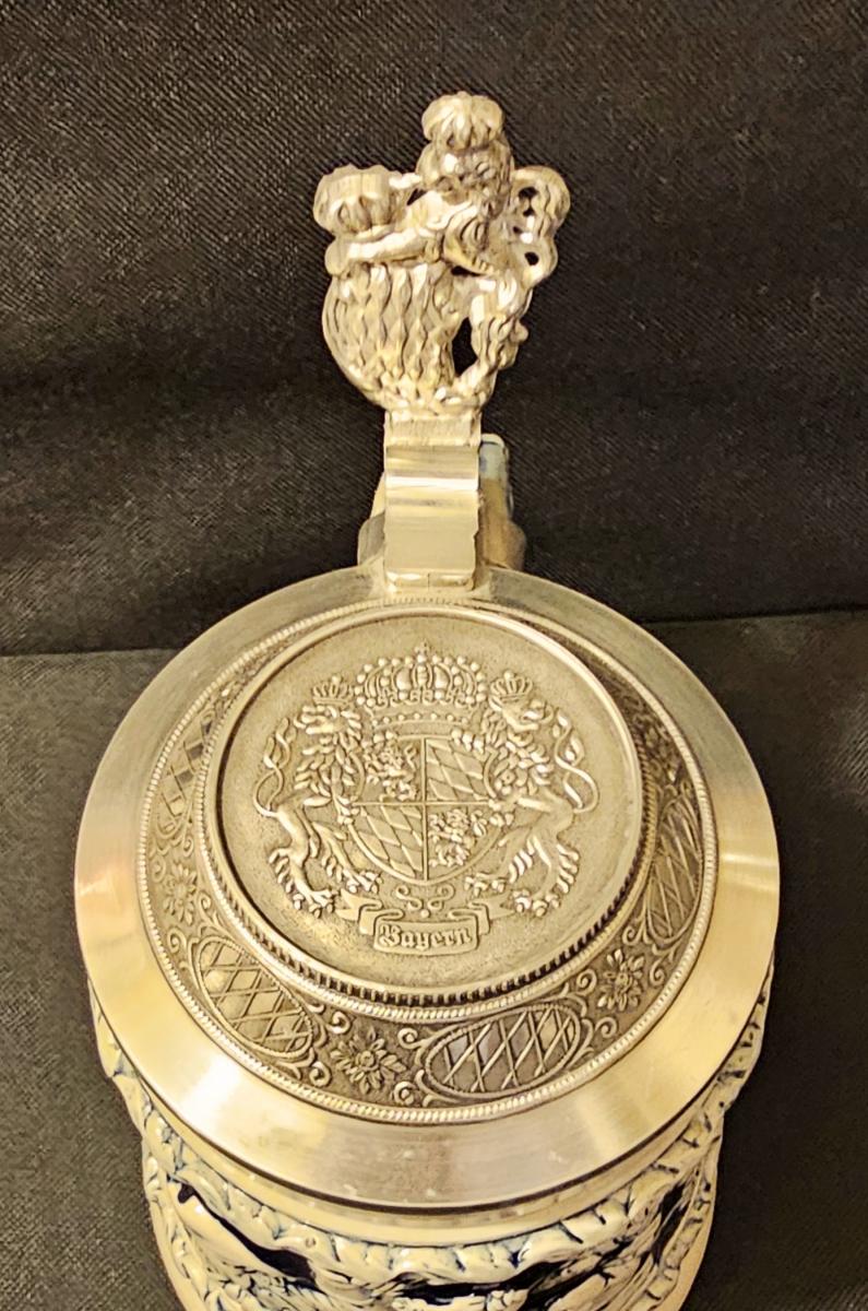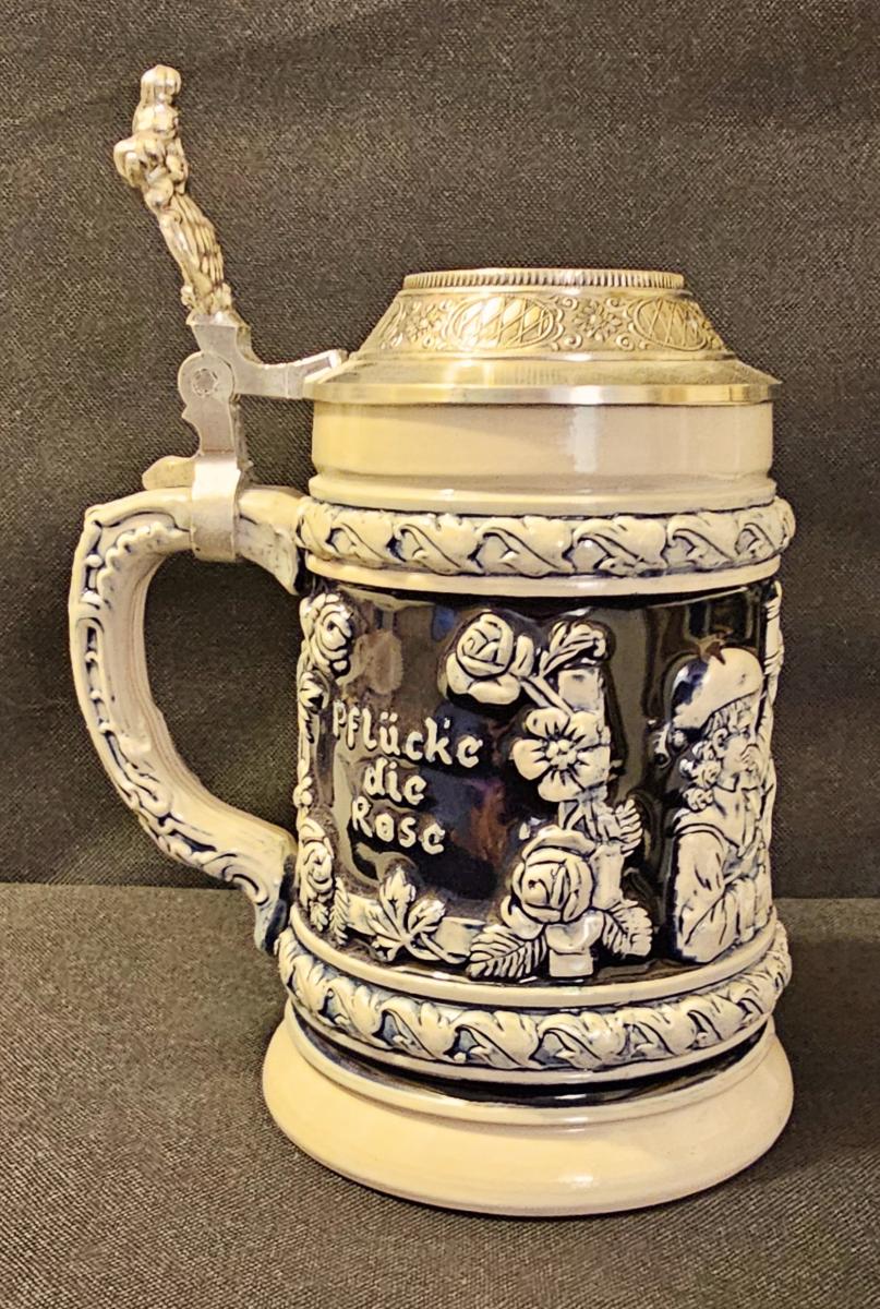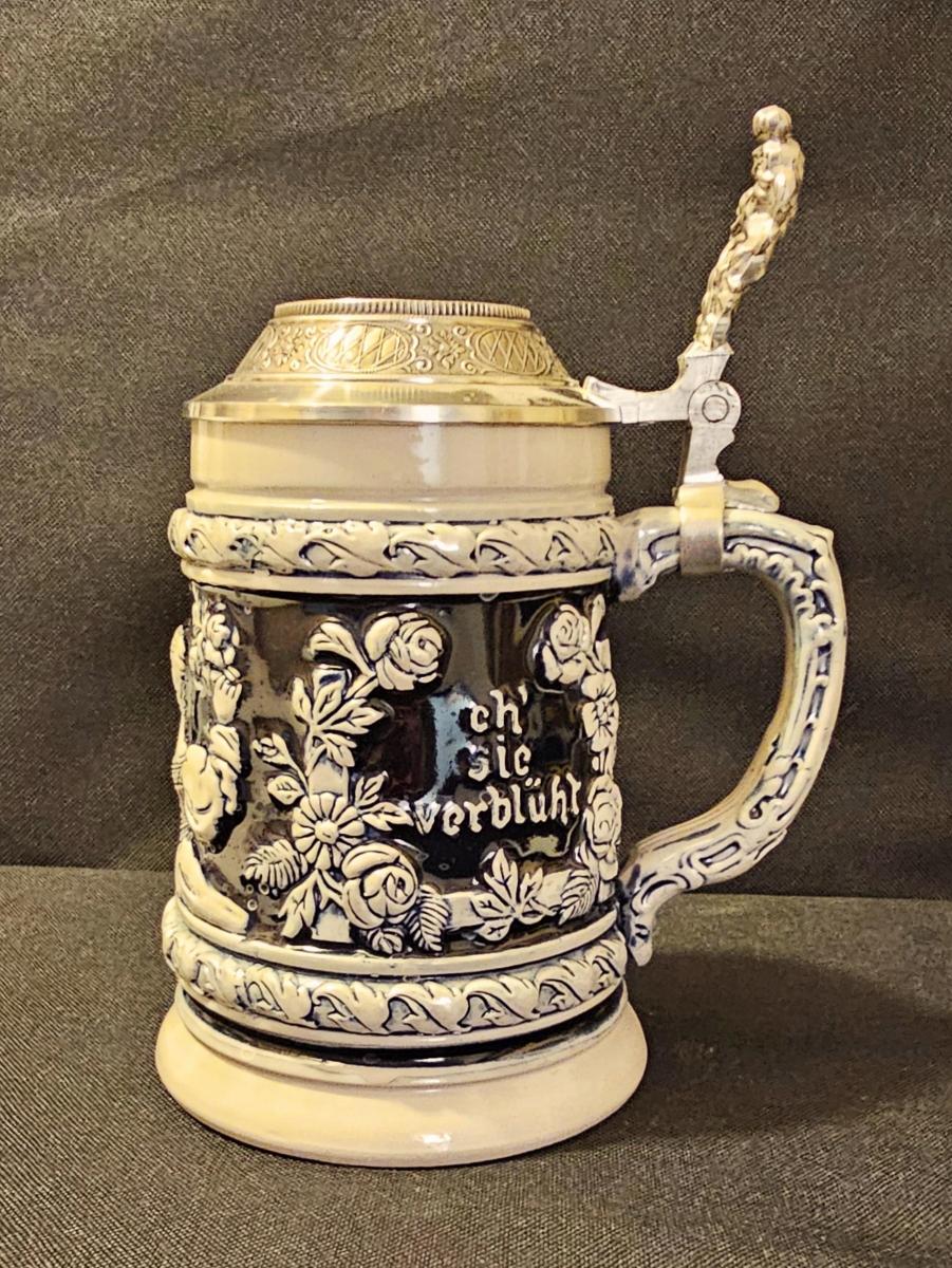 Thewalt Drinking Couple stein with Bayern shield on pewter lid