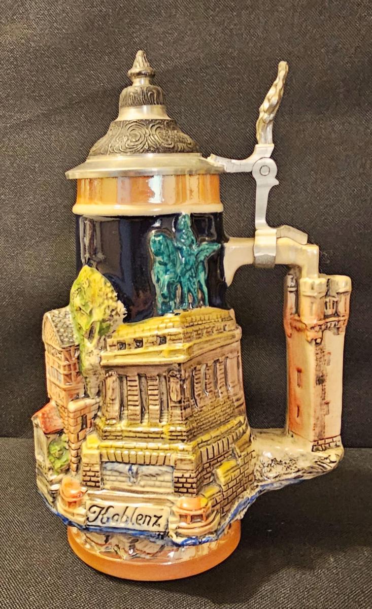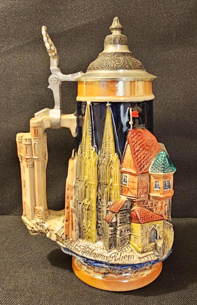 Limited edition 3D relief Thewalt Koln-Koblenz-Rudesheim tourist stein
