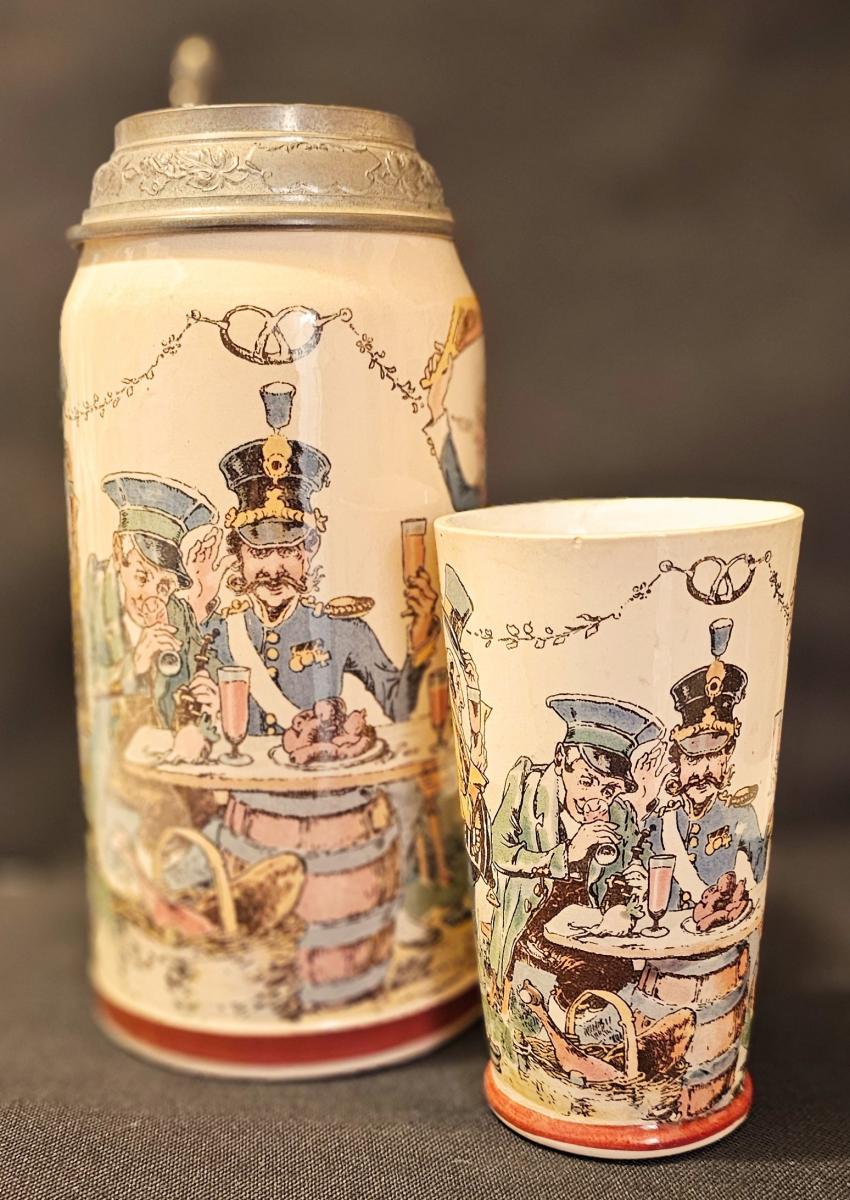 Mettlach Soldiers Drinking beaker that matches stein 1526-1110. Designed by Heinrich Schlitt.